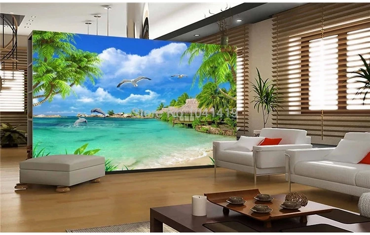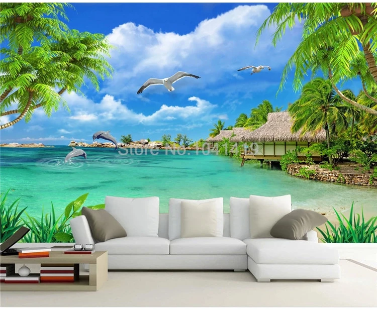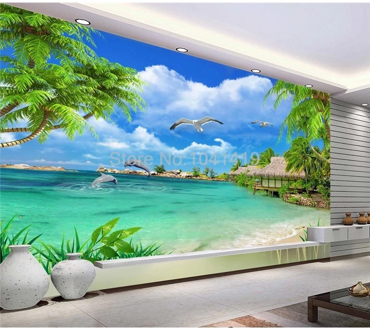 Настенные 3D-обои на заказ, кокосовое дерево, морской пейзаж, настенная живопись, фоновая самоклеящаяся Водонепроницаемая наклейка для гостиной, телевизора, дивана