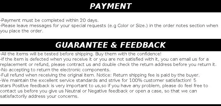 -Все товары будут отправлены в течение 2-4 рабочих дней (за исключением субботы, воскресенья и праздников) после получения и очистки вашего платежа.