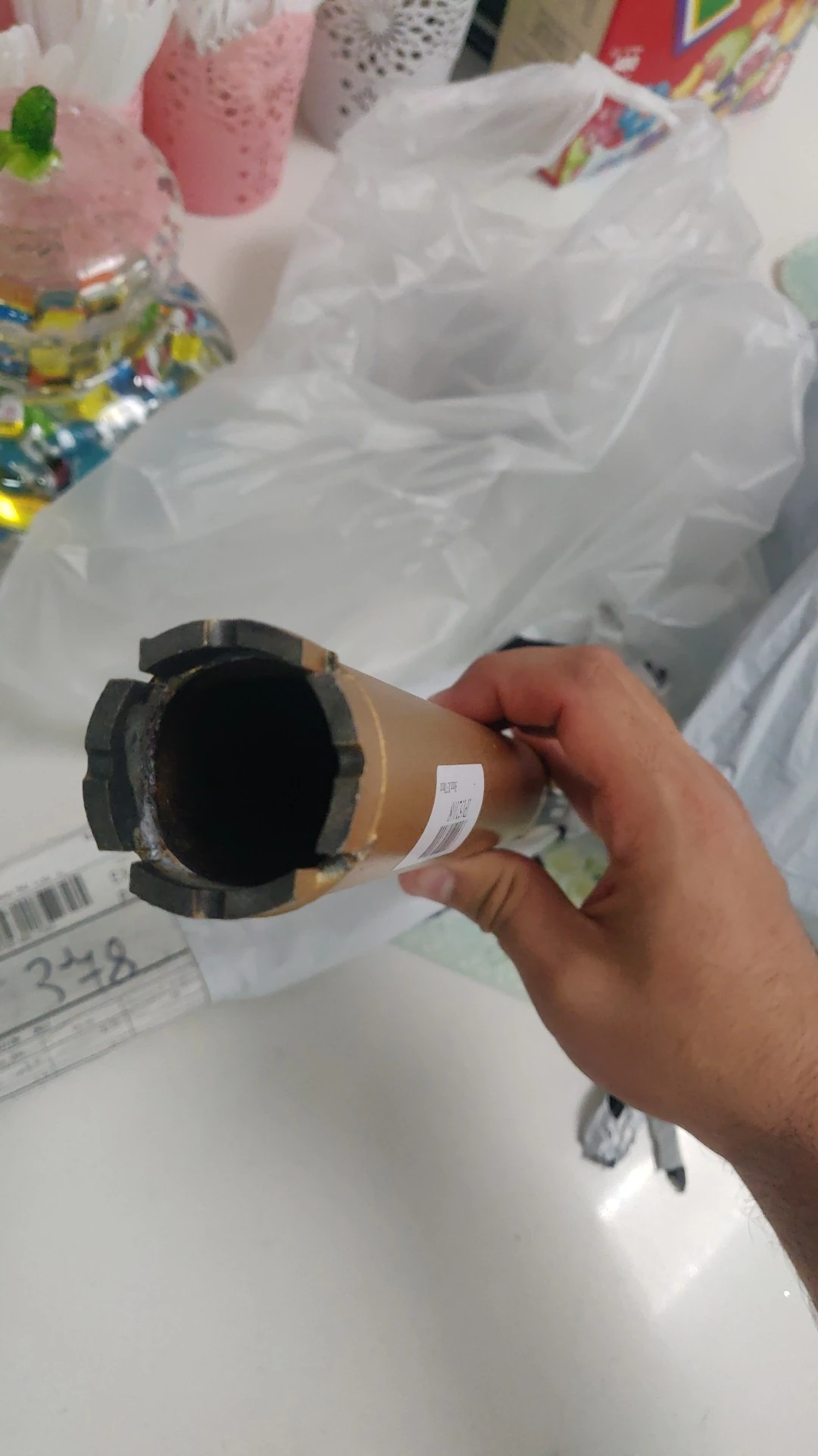 я разочарован! один сегмент алмаза приварен косо! коронка бьёт!! но сверлит и на сухую. ровного захода не получается. а если они стоят не ровно то и износ будет не равномерный..