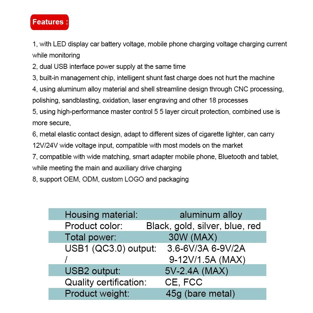 Feature 5Car USB Charger For iPhone Xs Max Xr Xs