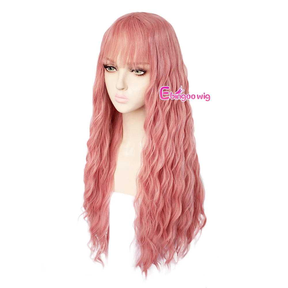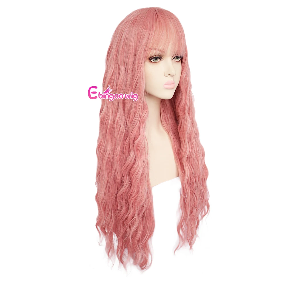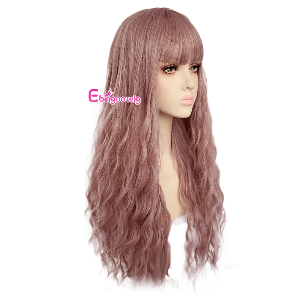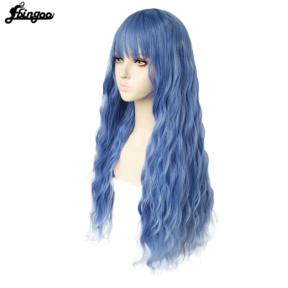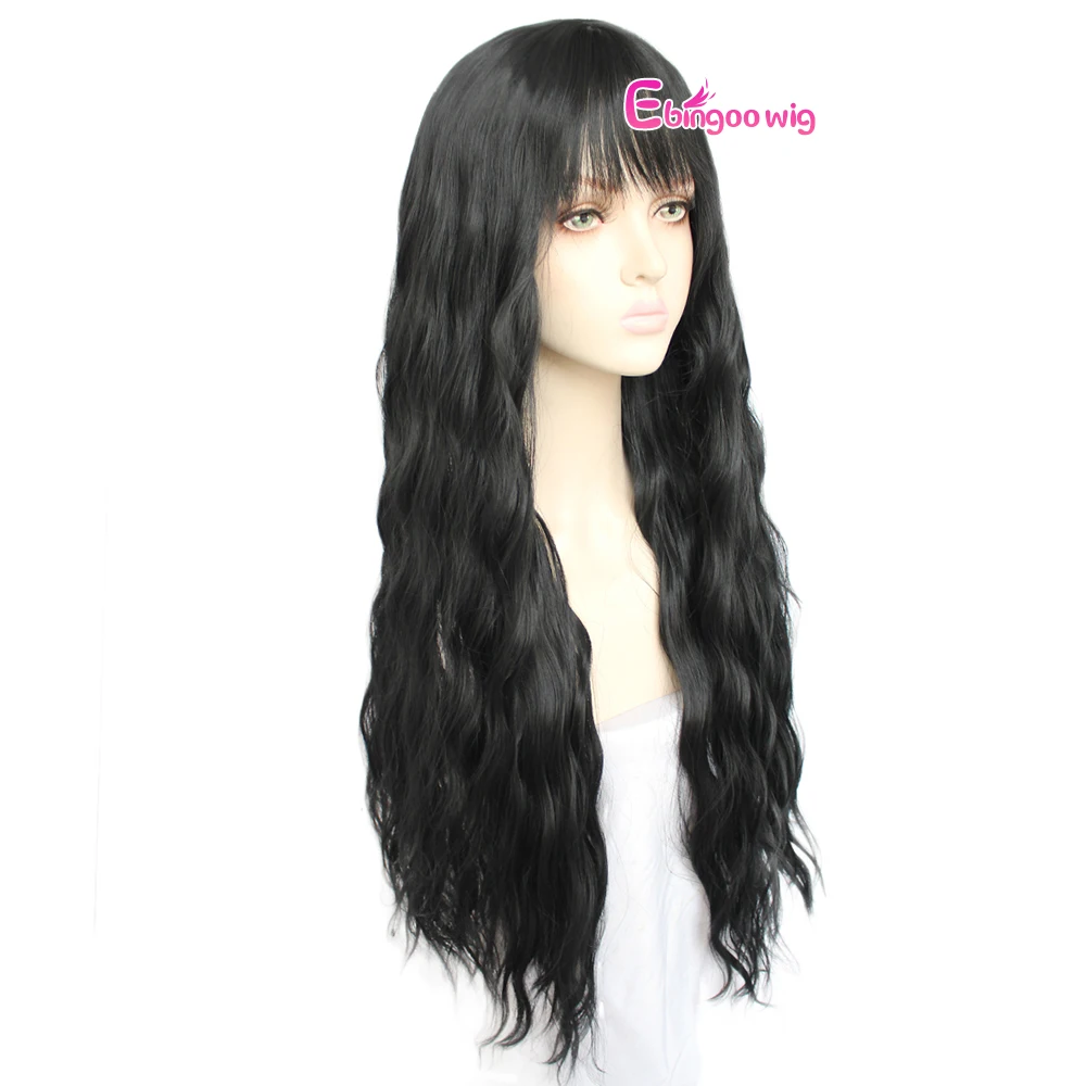 Ebingoo длинный глубокий волнистый блонд розовый синий черный белый синтетический парик с аккуратной челкой для женщин высокотемпературное волокно