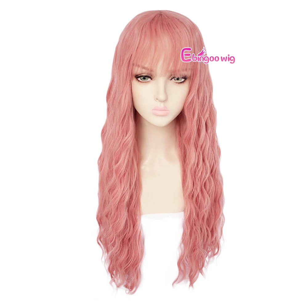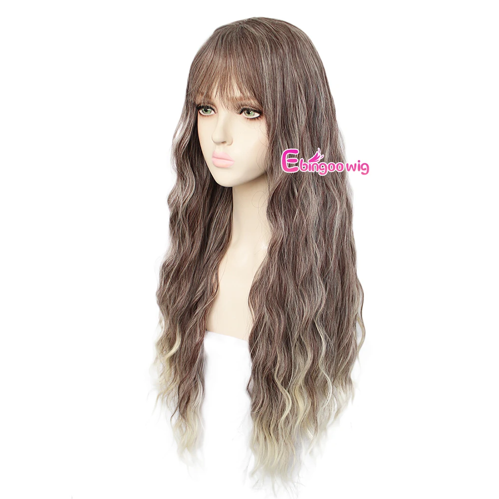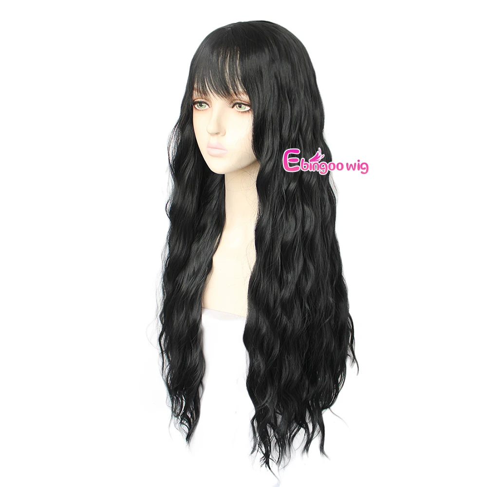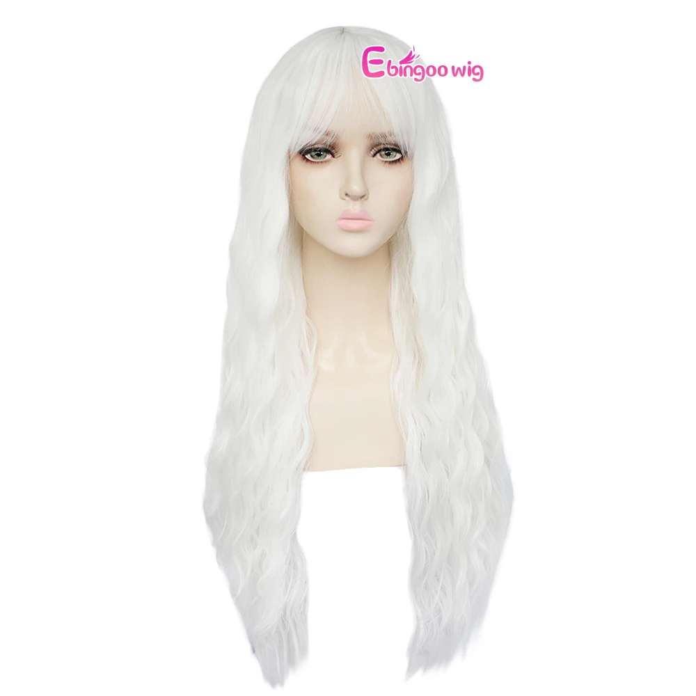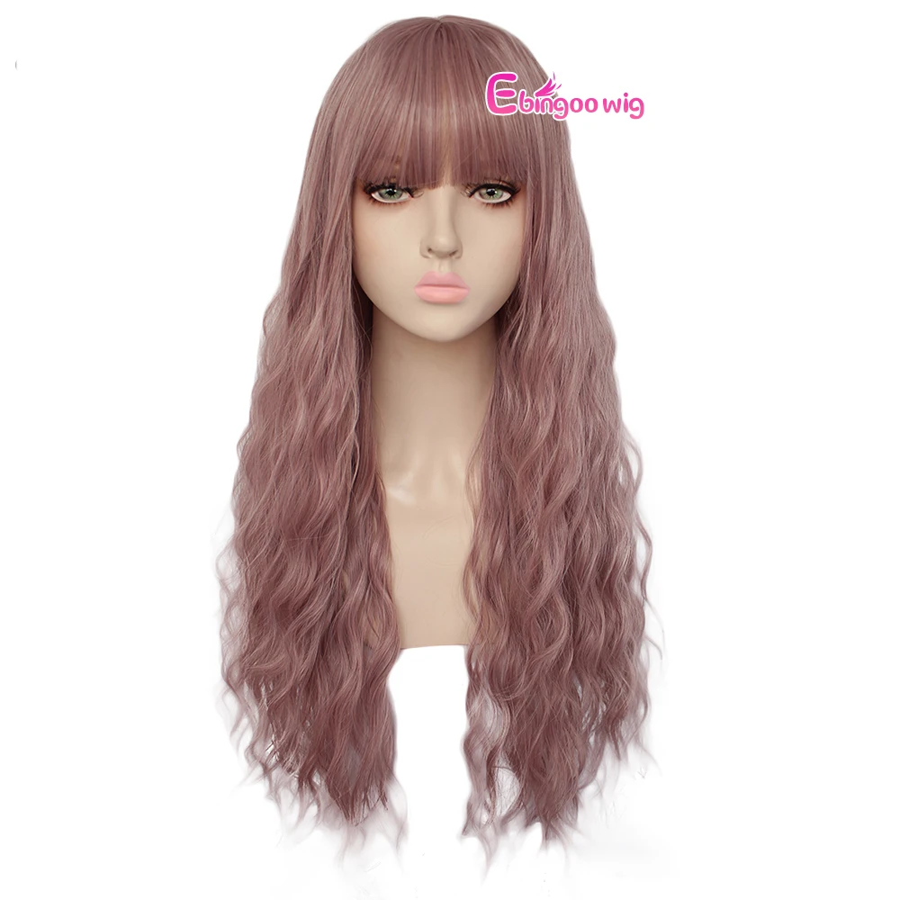Ebingoo длинный глубокий волнистый блонд розовый синий черный белый синтетический парик с аккуратной челкой для женщин высокотемпературное волокно