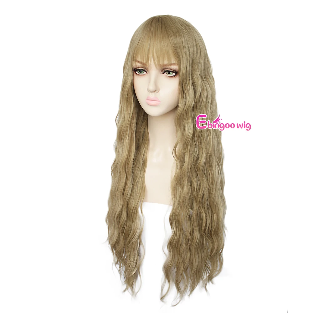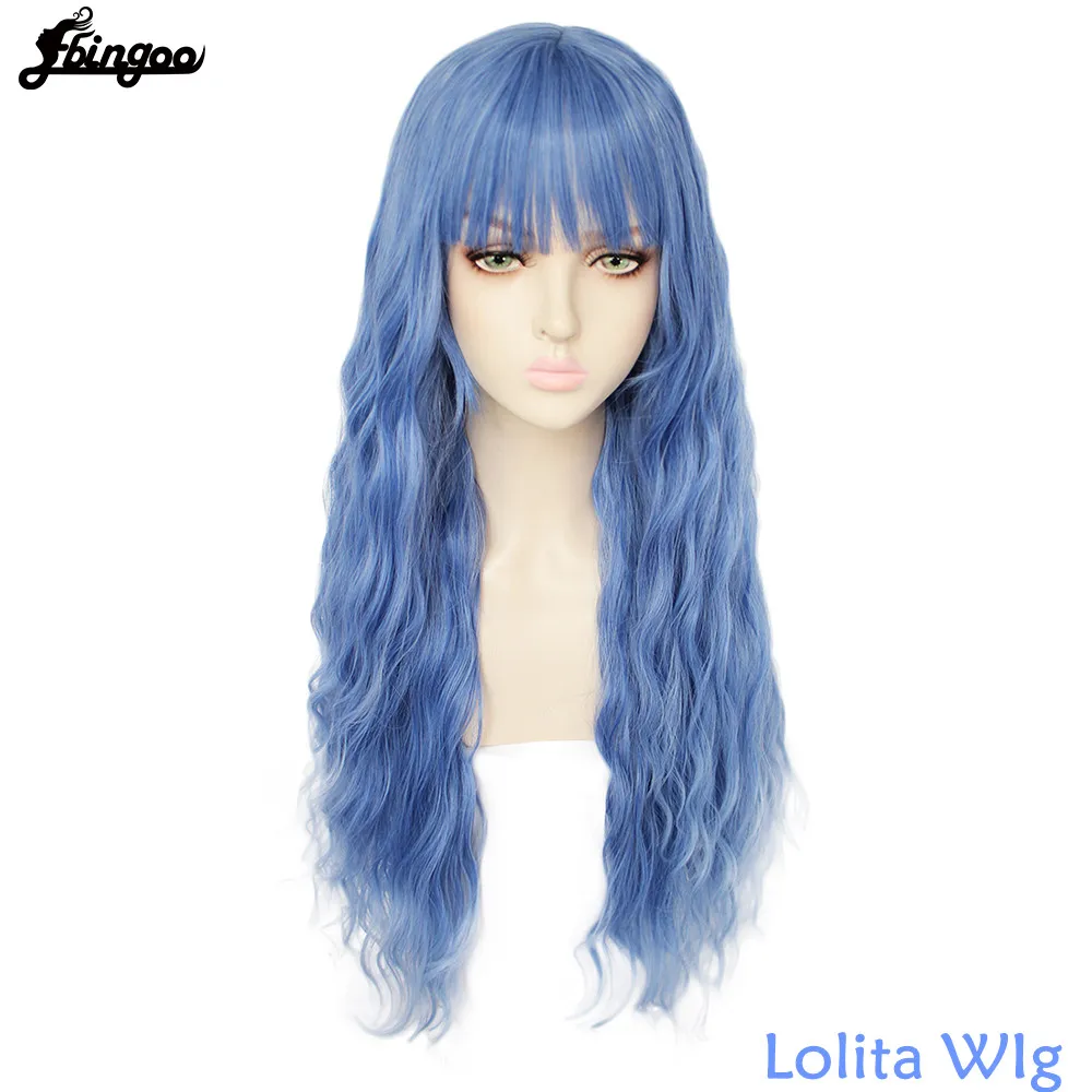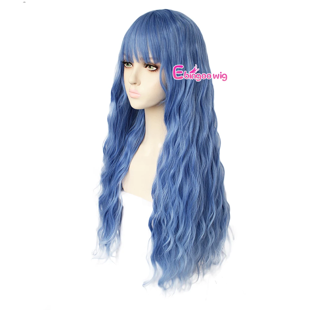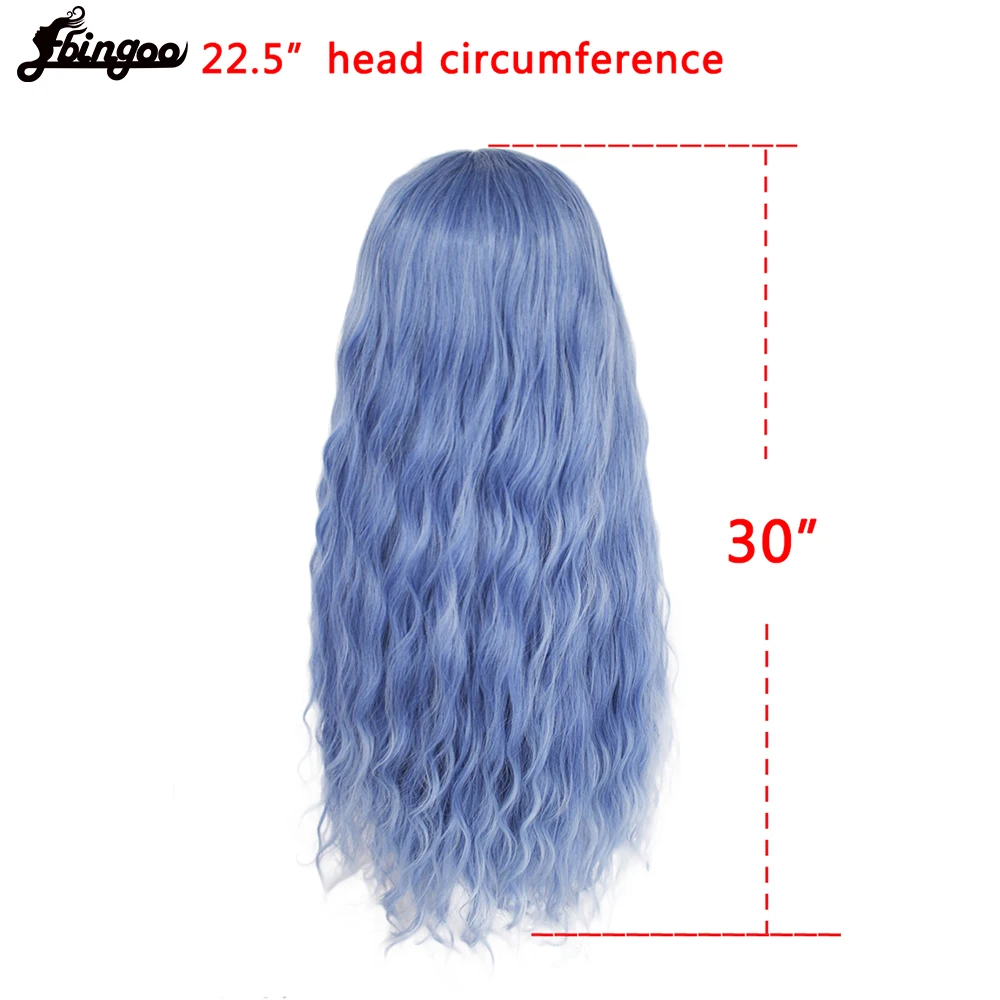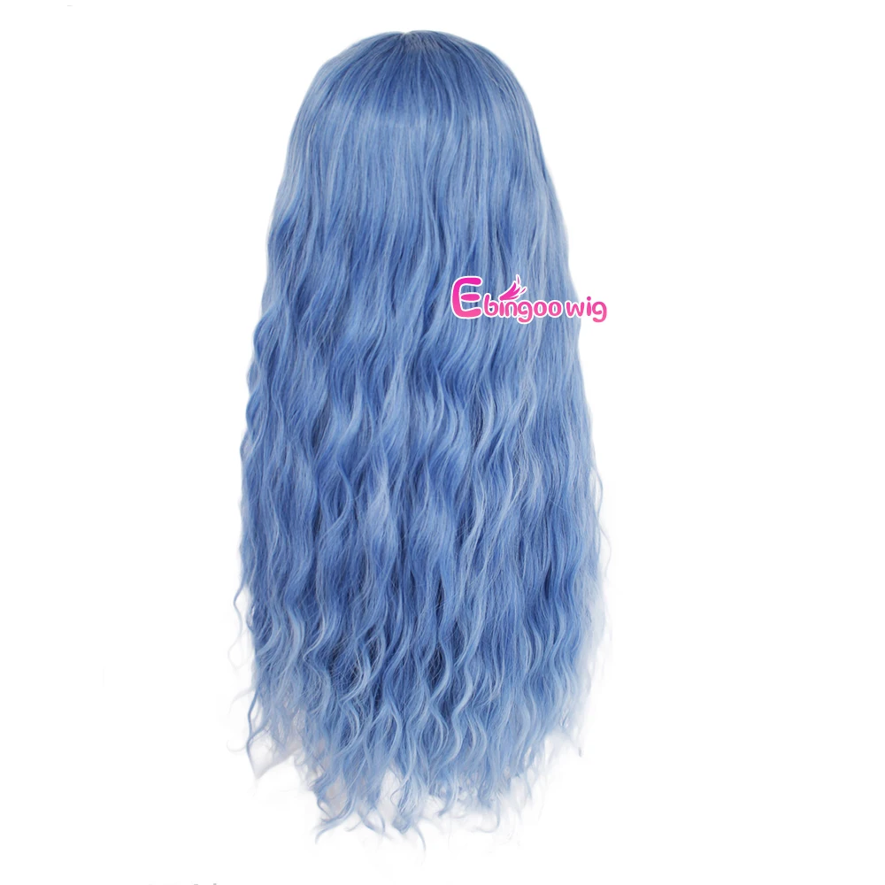 Ebingoo длинный глубокий волнистый блонд розовый синий черный белый синтетический парик с аккуратной челкой для женщин высокотемпературное волокно
