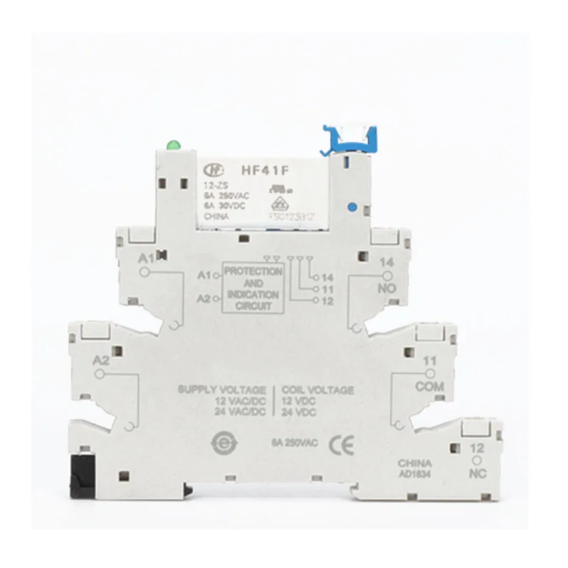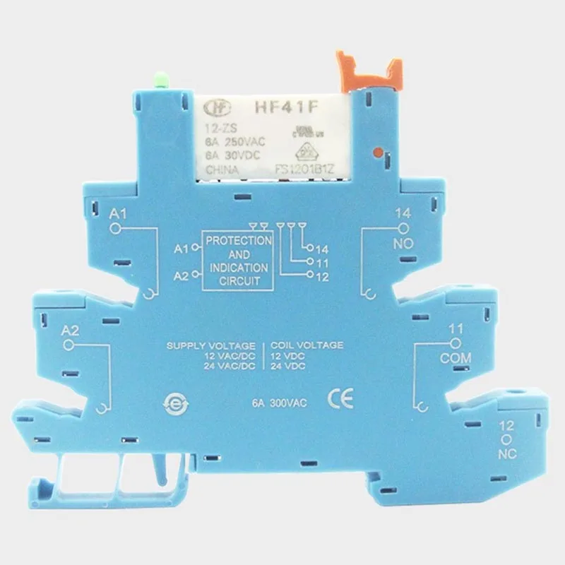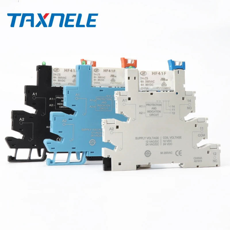 Встроенное реле питания для монтажа на печатную плату HF41F 12 В 24 В с держателем реле, модуль контакта напряжения, комплект DIN-рейки