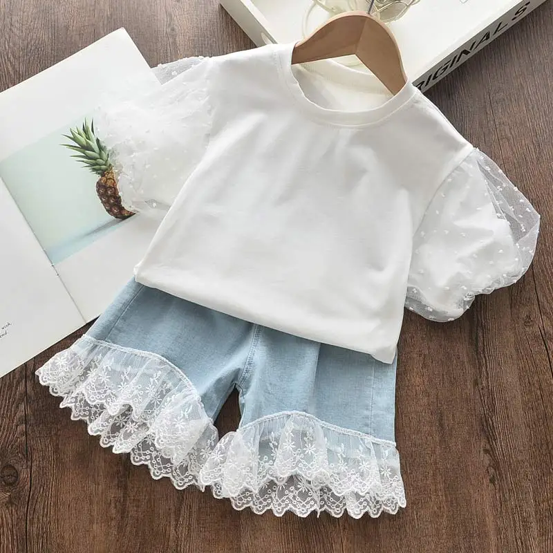 Комплект одежды для девочек 3-7 лет, топ без рукавов и шорты с вышивкой, лето 2021