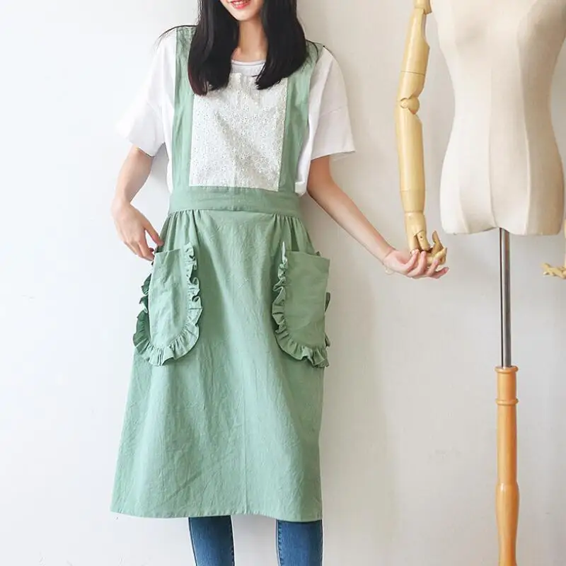 Кружевные хлопковые льняные Кухонные фартуки в скандинавском стиле, Женский фартук для работы в саду, яркий фартук для взрослых для выпечки кофе