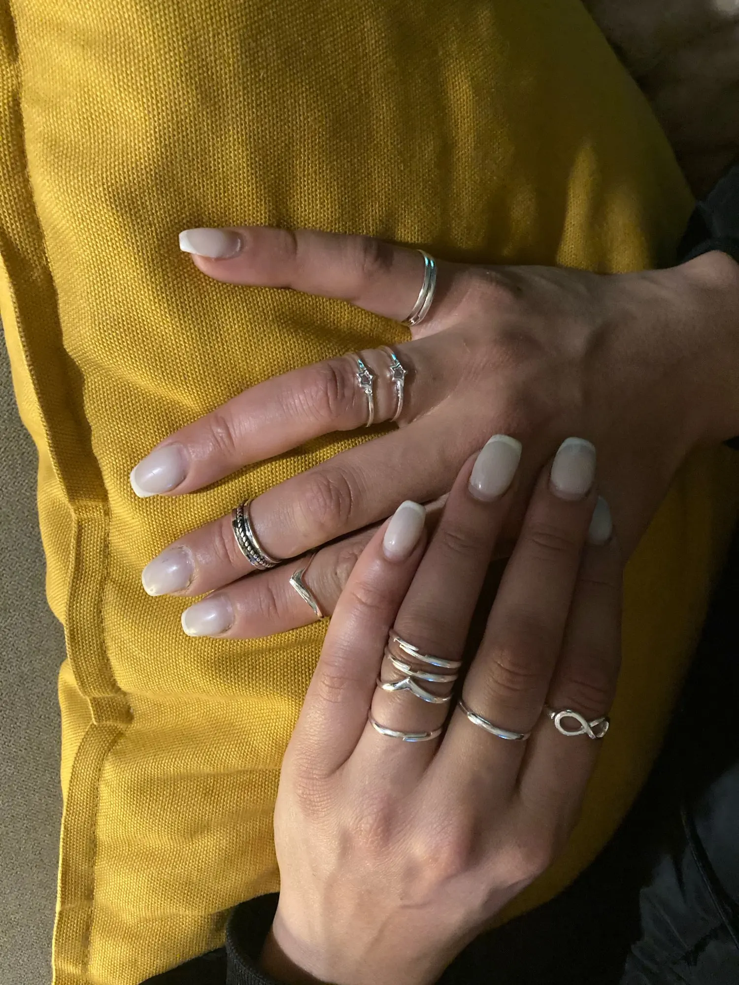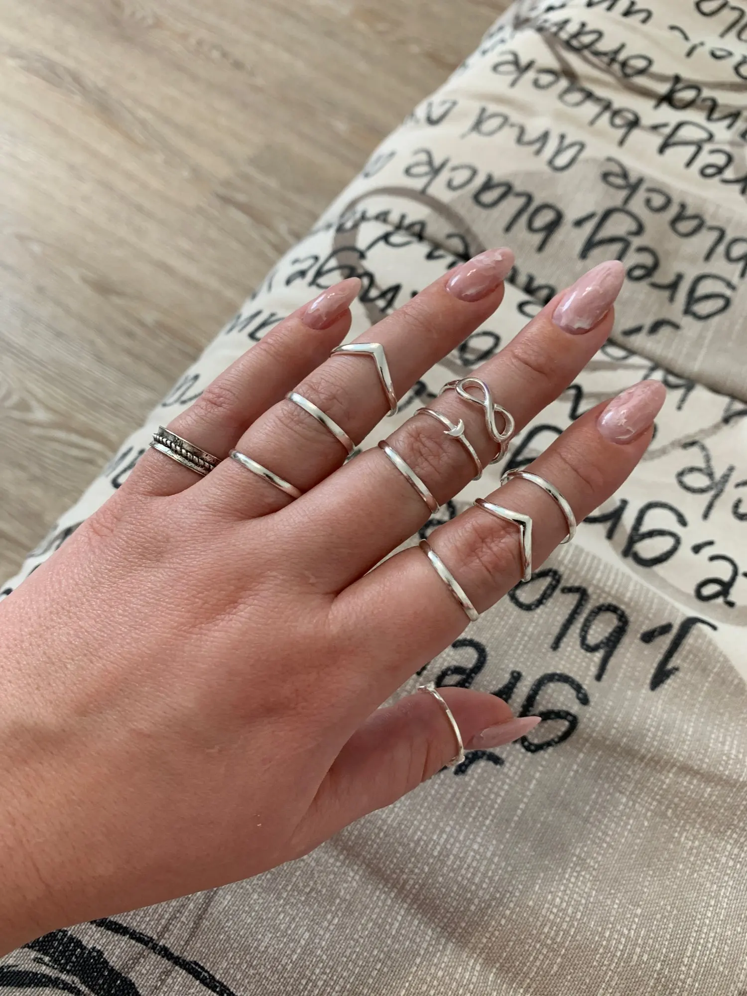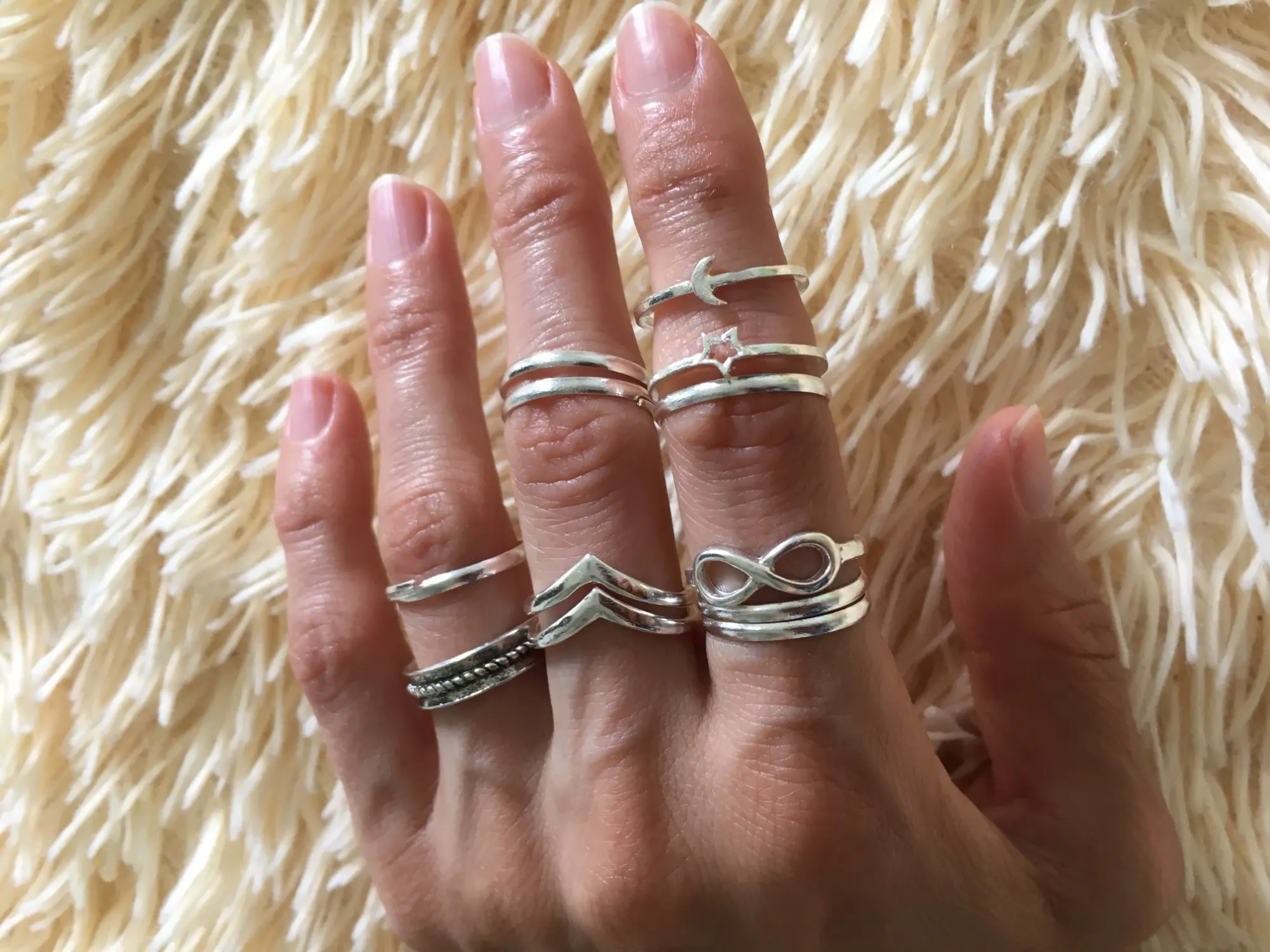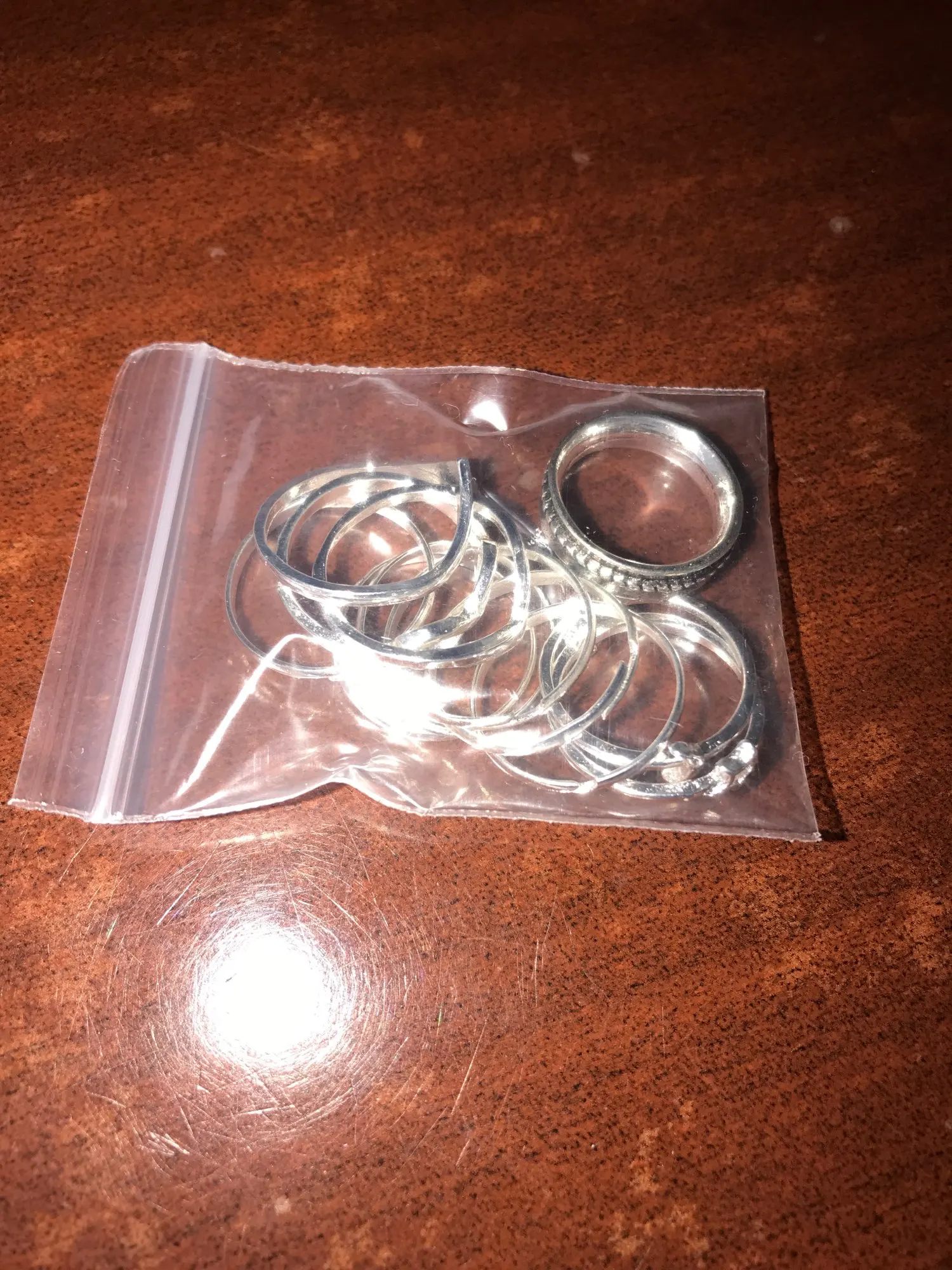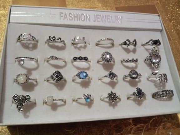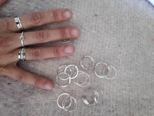 кольца красивые,6 с разными узорами(одно сломано) и 6 простых с разрезом для корректировки размера(эти разрезы ни к чему и колечки очень тоненькие).