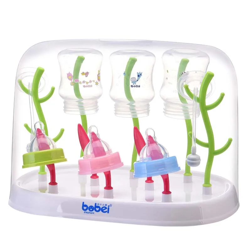 Антибактериальная стойка для сушки детских бутылок, стеллаж для сливных бутылок из искусственного материала с крышкой