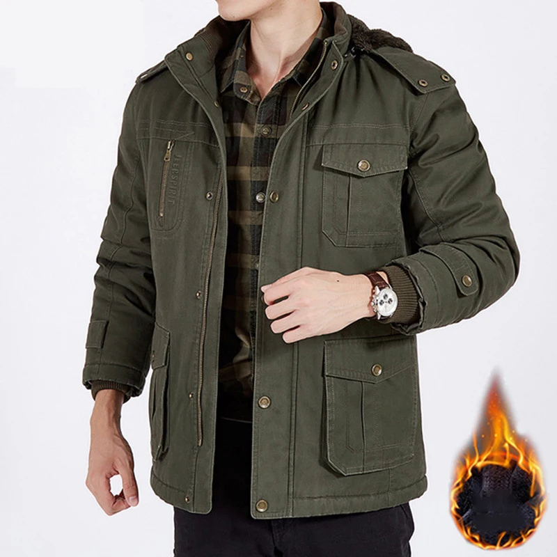 Мужская хлопковая куртка, повседневная куртка средней длины, с неск...