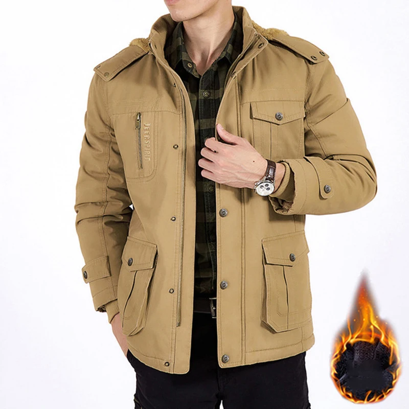 Мужская куртка с шерстяной подкладкой, теплая ветровка, пальто с ка...