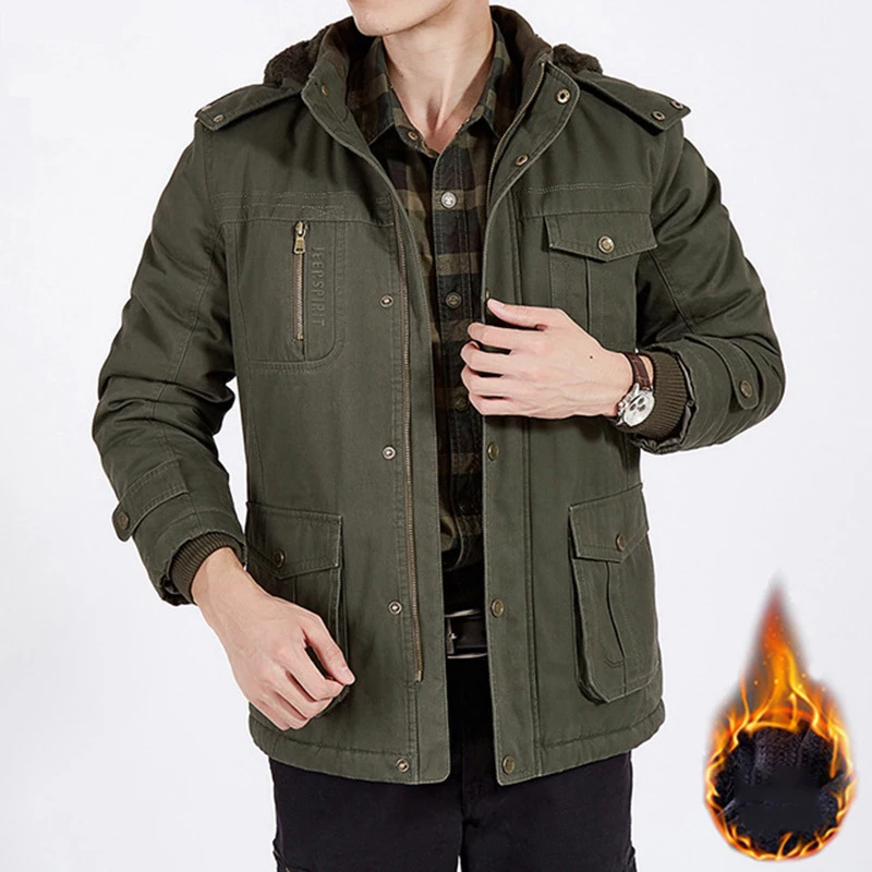 Мужская зимняя куртка с капюшоном, толстая ветровка, теплая подкладка из шерсти, длинное пальто для мужчин размера плюс M-4XL, 2019