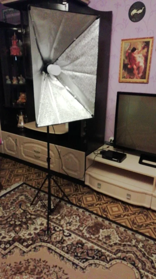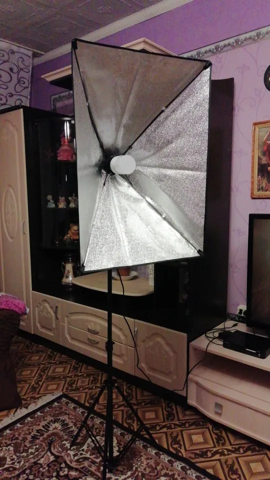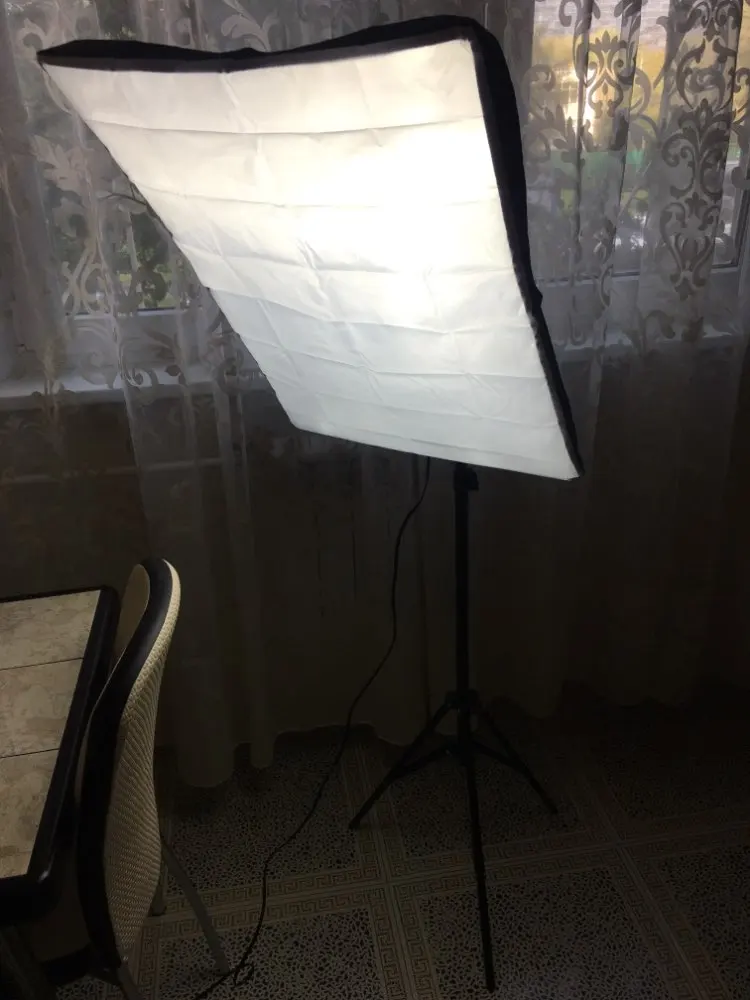 вполне обычный классический софт бокс, конструкция в принципе не хлипкая, держит нормально, старт нормально, светит хорошо, не имеет никакого смысла покупать в комплекте с лампой, так как проще и дешевле купить в своих краях, так же при необхадимости можно собрать переходник на 2, 3, 4 лампы, и не переплачивать за софт бокс с 4 готовыми патронами, а так продукт норм, продавца советую, доставка быстрая