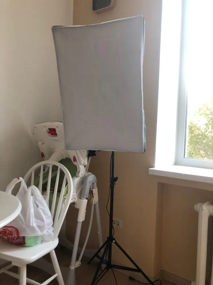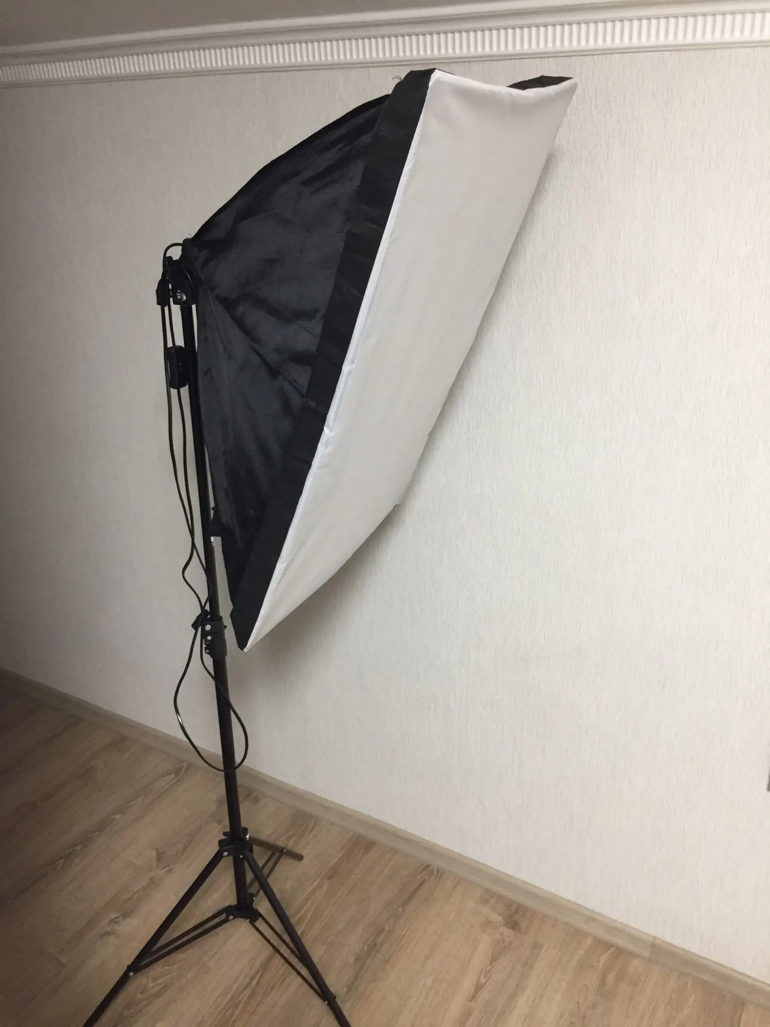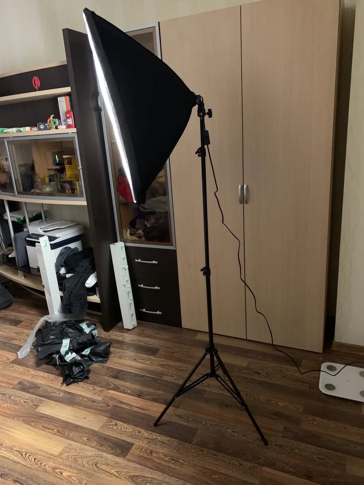 Софтбокс супер, пришёл за неделю, при том, что заказ отправили на второй или третий день. В высоту можно поднять на 2,5 метров. Достаточно яркий, хоть и не большой