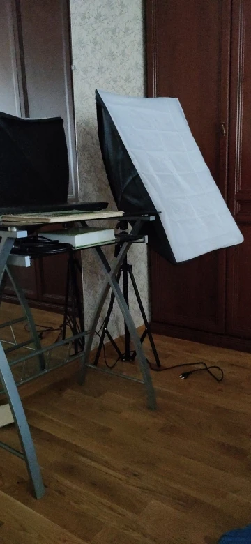 Светильники достаточно качественные. Если софтбокс поставить длинной стороной вертикально, то можно наклонять вперёд и назад, если же поставить горизонтально, то такой возможности нет, можно только регулировать по высоте. Лампы покупал отдельно, светодиодные 30Вт, 2650 лм, 6500 K. Если использовать рассеивающую шторку, то нужны лампы помощнее. Рекомендую использовать только холодные лампы, так как в софтбоксе с закрытой шторкой вентиляции практически нет. В целом светильники работают хорошо. Для качественного равномерного освещения требуется два экземпляра.