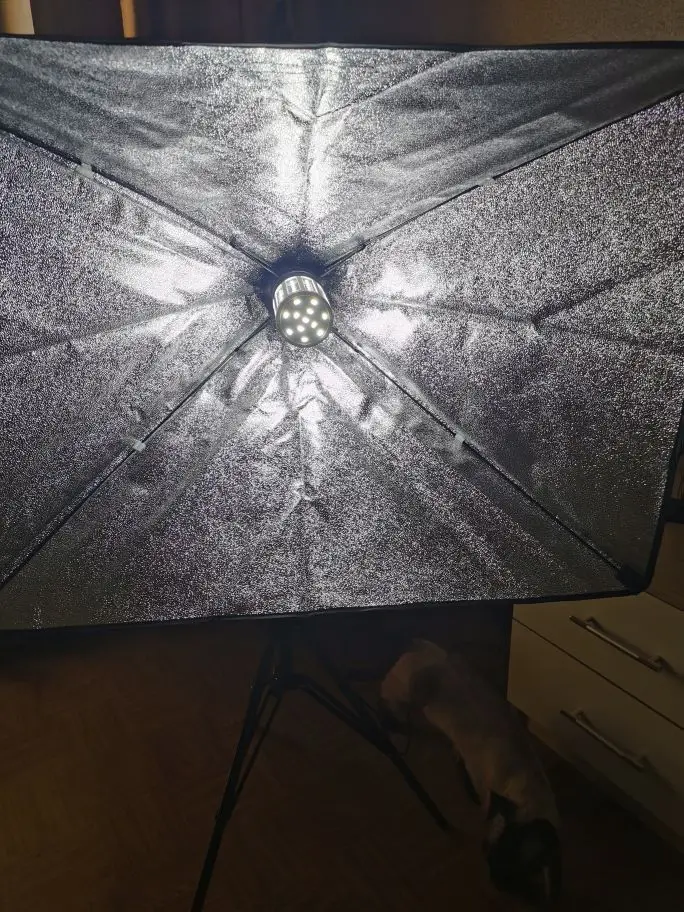 Отличный софтбокс! С лампой 20 ватт белый свет, очень яркое и ровное освещение. Респект производителю!