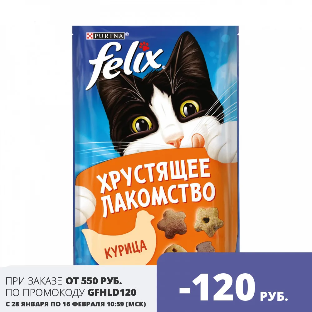 Чаще радуйтесь общению с Вашим питомцем благодаря Хрустящему Лакомству Felix! Хрустящее Лакомство Felix - это дополнение к ежедневному рациону, с помощью которого Вы можете баловать Вашего питомца, когда Вам этого хочется. В каждой упаковке Вы найдете удивительные ароматные гранулы с восхитительным вкусом и аппетитной текстурой! И это еще не все! Felix Хрустящее Лакомство содержит белки, витамины и Омега-6 жирные кислоты для того, чтобы помочь Вашему питомцу быть счастливым и здоровым. Предложите Вашему питомцу другие вкусы Хрустящего Лакомства Felix - радуйтесь вкусному разнообразию вместе! Преимущества: • Витамины, белок, Омега-6 жирные кислоты Рекомендации по кормлению: Ежедневная норма кормления для взрослой кошки весом 4 кг: 13г или примерно до 35 гранул. Следите, чтобы у Вашей кошки всегда была чистая, свежая питьевая вода. Пожалуйста, скорректируйте суточную норму основного корма в соответствии с нормой кормления лакомством в день. Присутствуйте рядом с Вашим питомцем во время кормления Хрустящим Лакомством Felix(r). Состав: Мясо и продукты его переработки, злаки, животный жир, экстракты растительного белка, минеральные вещества, сахара, дрожжи, рыба и продукты ее переработки, консерванты, аминокислоты, красители, витамины, антиоксиданты. Страна производства: Германия Условия хранения: Хранить в сухом прохладном месте