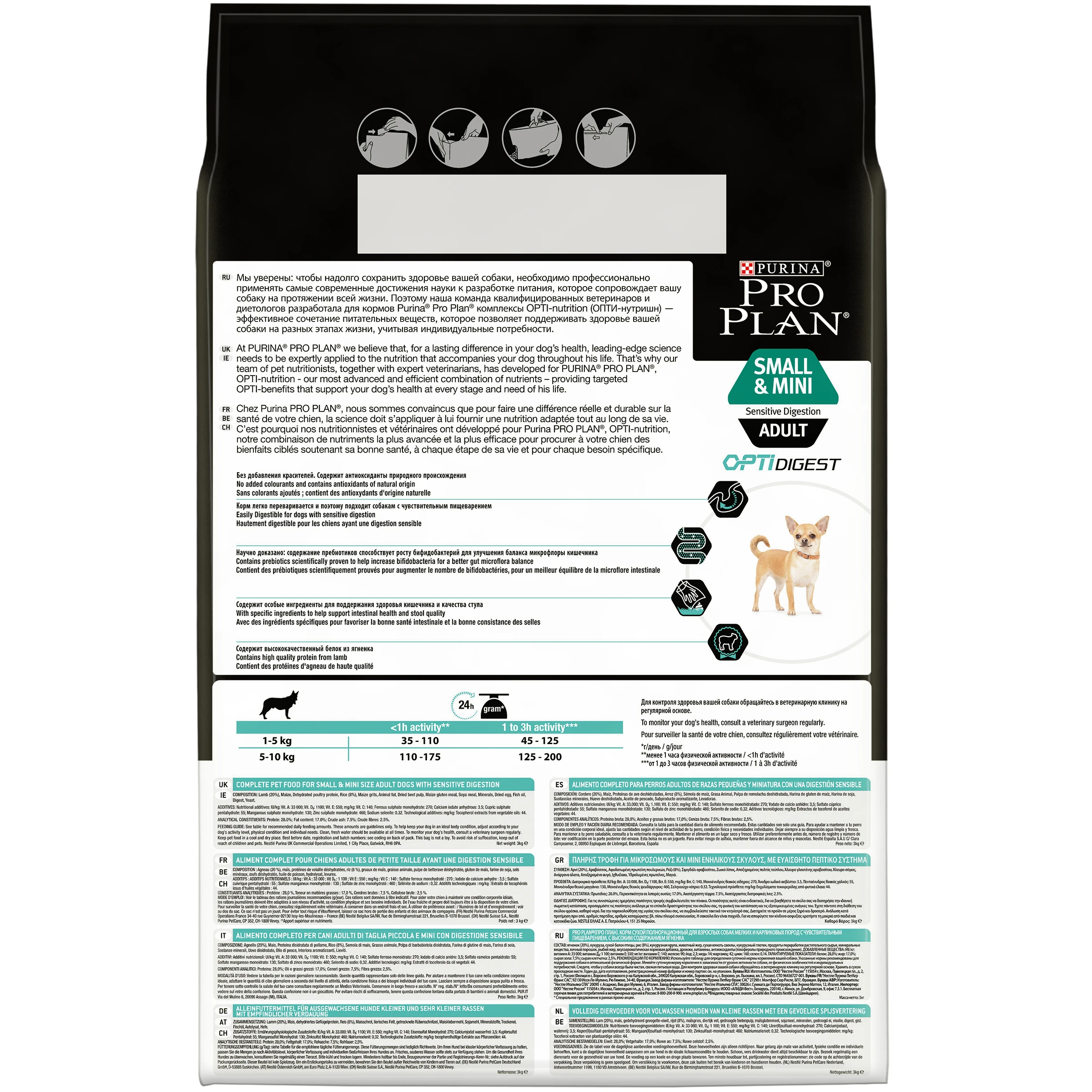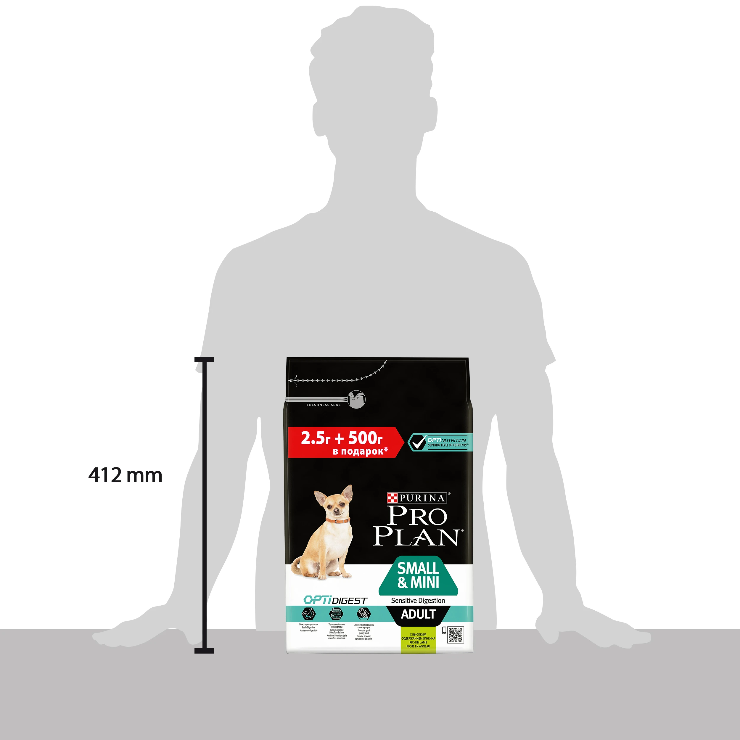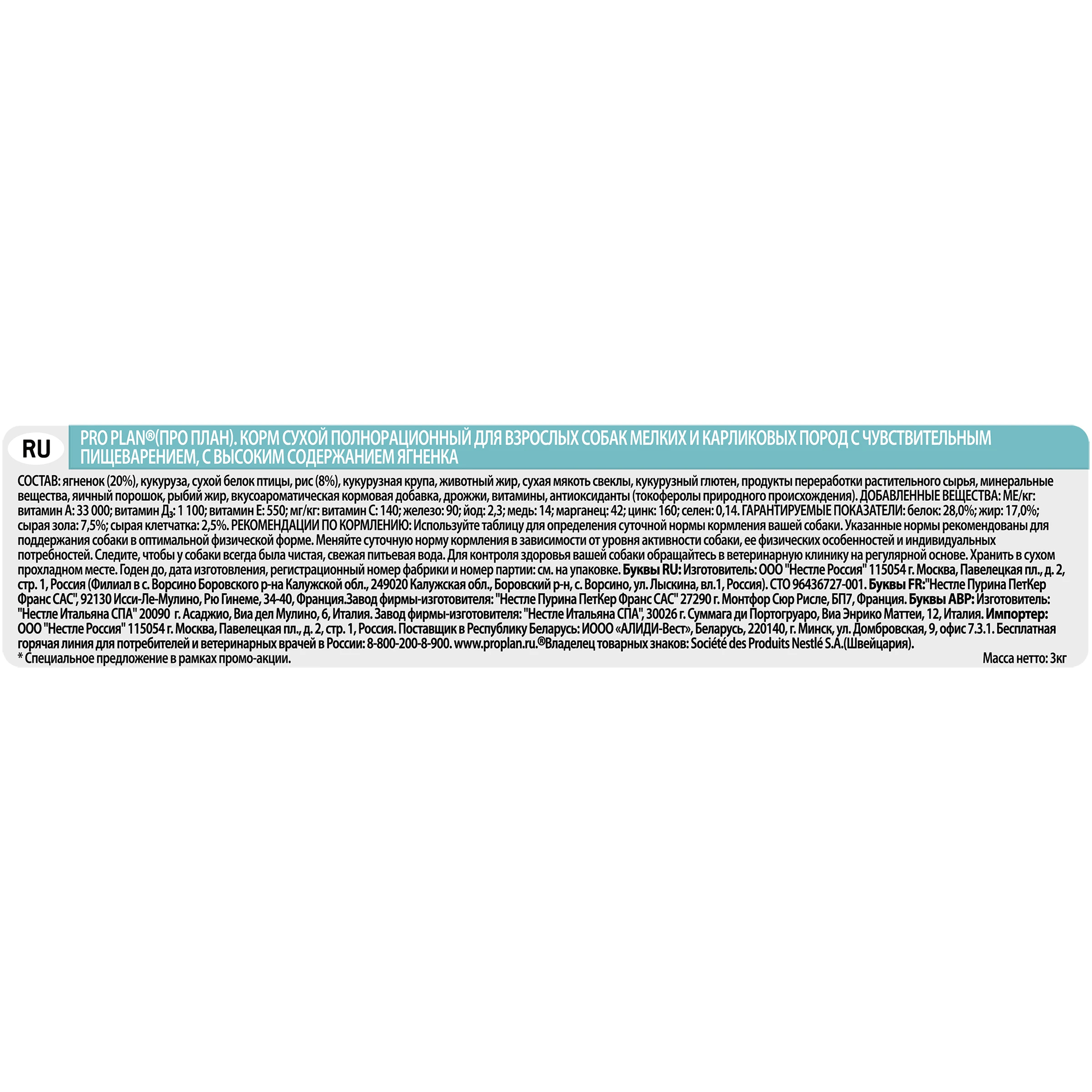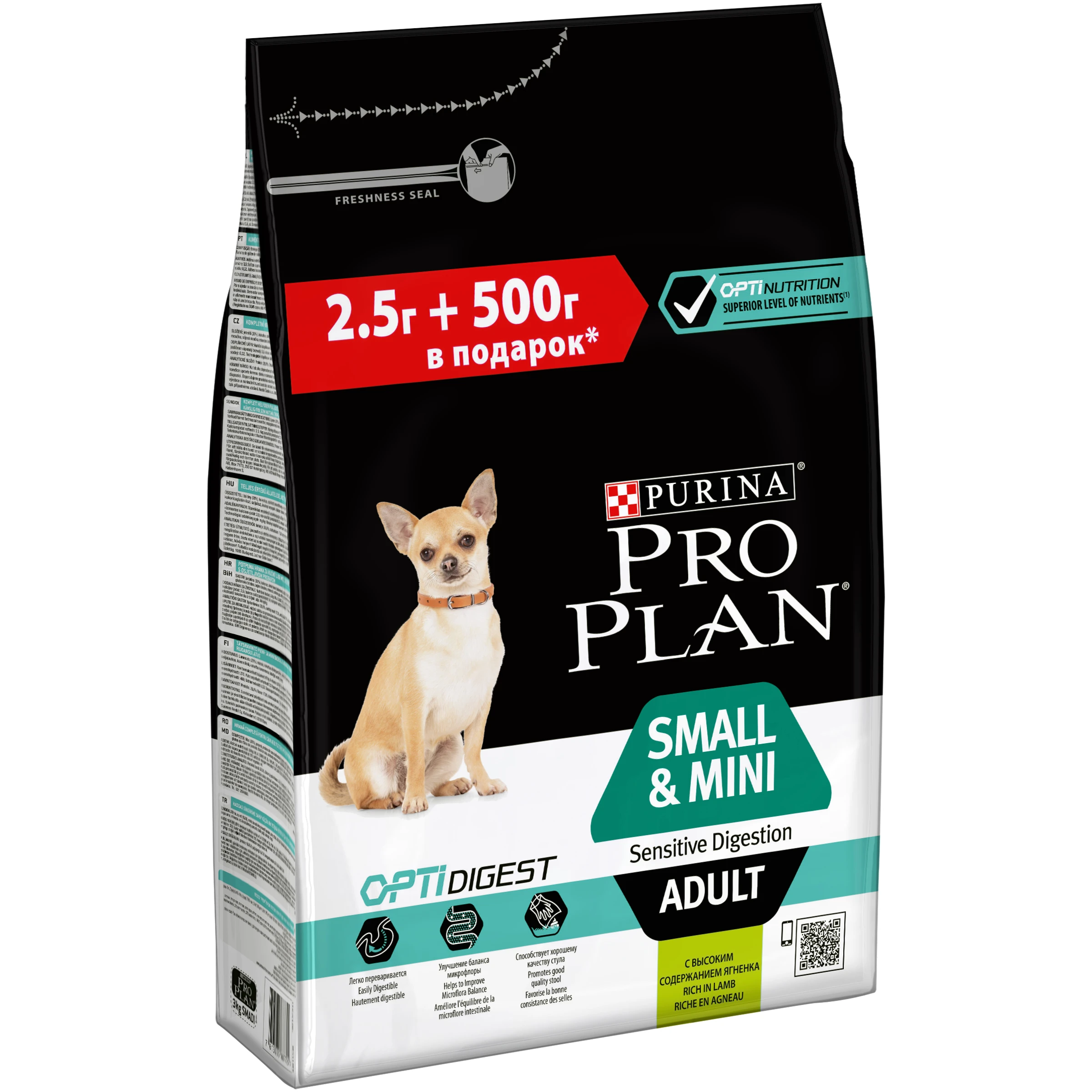Сухой корм Pro Plan для взрослых собак мелких и карликовых пород с чувствительным пищеварением, с комплексом OPTIDIGEST, с ягненком, 3 кг
