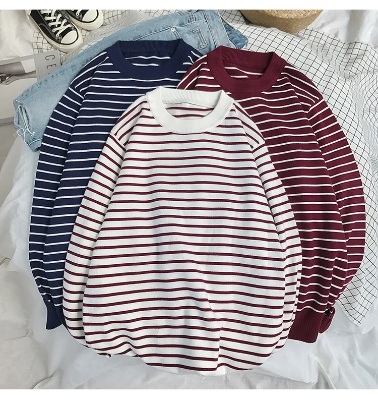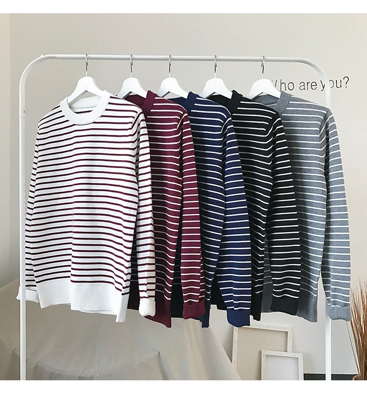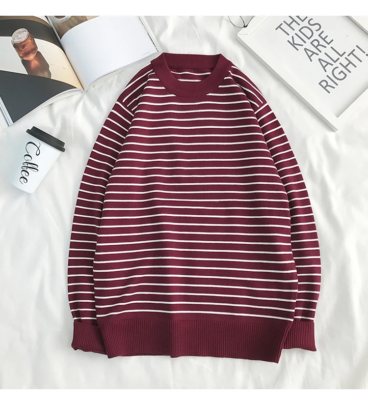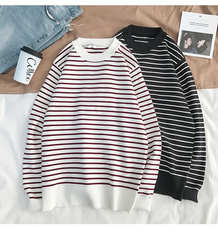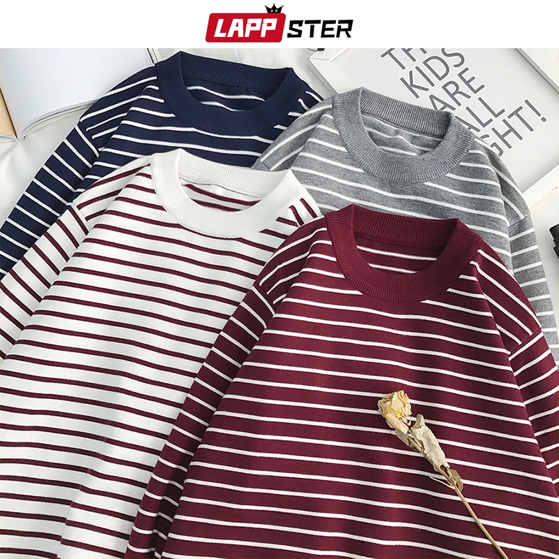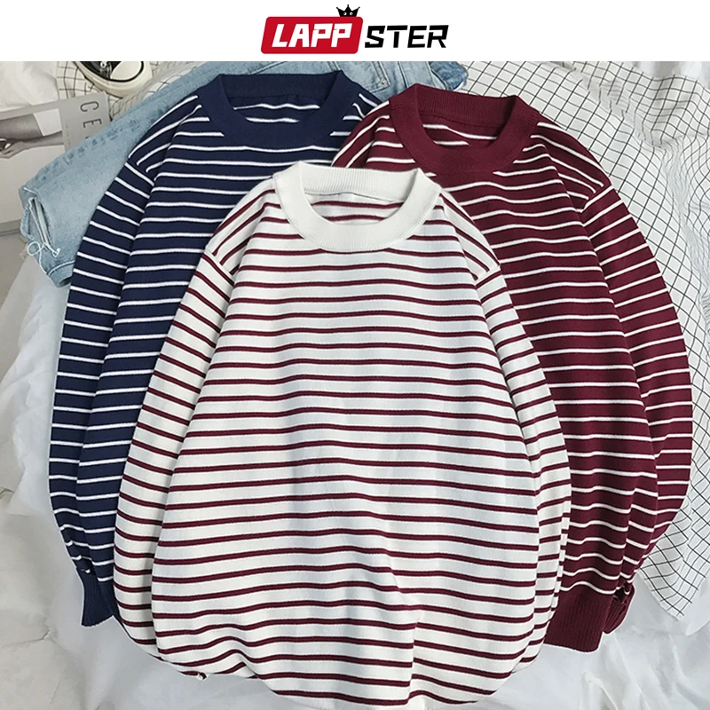 Свитер LAPPSTER мужской в Корейском стиле, пуловер в полоску с открытыми плечами и круглым вырезом, повседневный черный свитер в стиле Харадзюку для пар, 2021