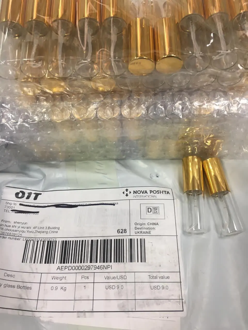 Прибыла посылка за 3 недели. Заказываю третий раз. В этот раз попалось 3 бракованных минифлакона. Продавец пообещал сделать скидку на следующий заказ.