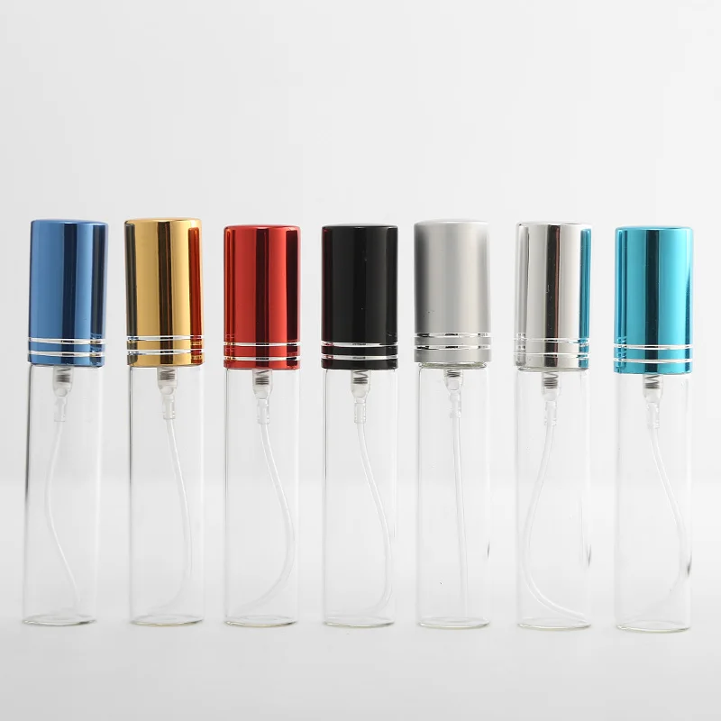 Стеклянный многоразовый флакон для духов, 20 шт., 50 шт., 100 шт., 5 мл, 10 мл, 15 мл, с алюминиевым покрытием пустой распылитель для парфюмерии, для путешественников
