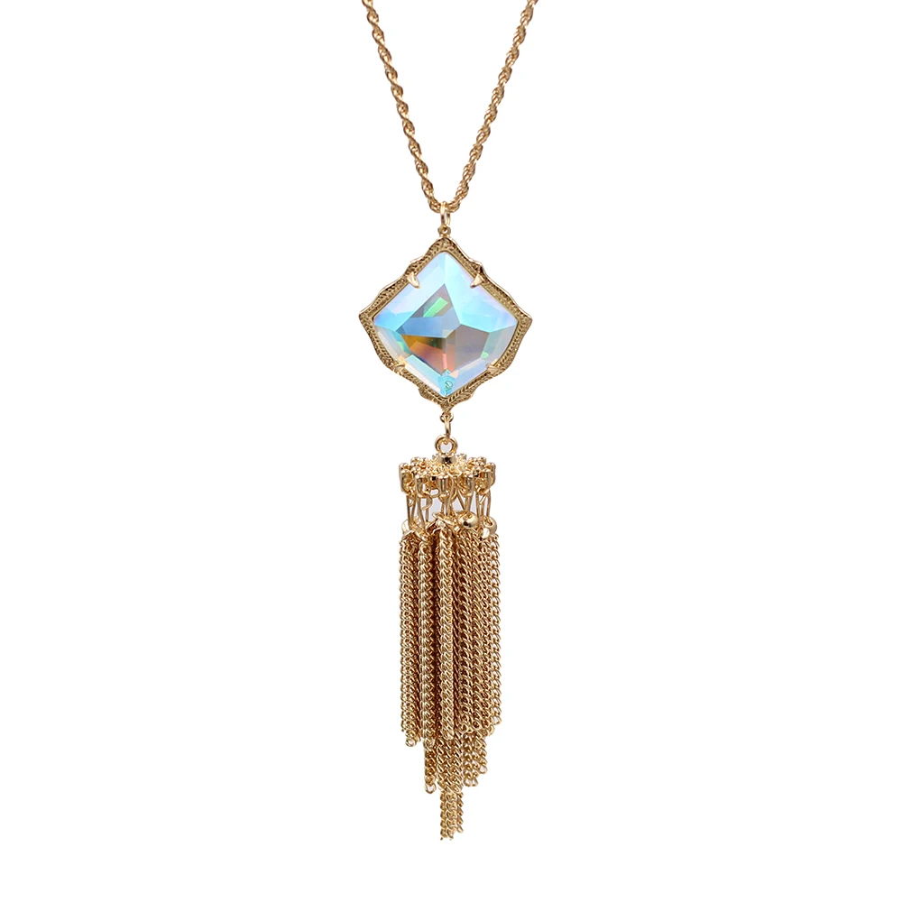 Ожерелье-подвеска женское, с четырехгранным многоугольником, граненым прозрачным стеклянным камнем