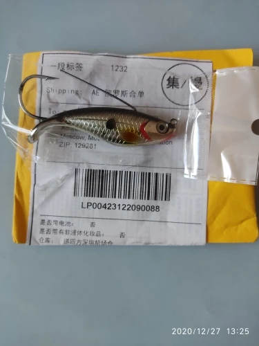 Заказ от 10.12.2020 получил 27.12.2020. Москва. Соответствует описанию. Качество хорошее. Крючок острый. Ещё бы на брюхе писали вес и прочее... Так делают некоторые производители. Отправлено быстро. С продавцом не общался. В деле не опробовал. Зима. Продавцу Спасибо. Рекомендую