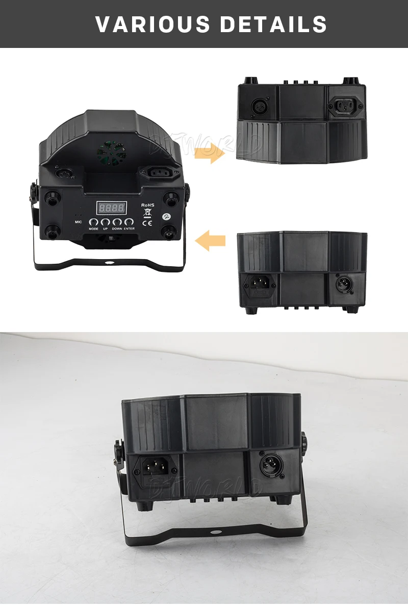 * Входное напряжение: AC90--240V,50 -- 60 Гц* Режимы работы: DMX512, автозапуск, звуковые действия, стробоскоп, автономный и ведущий/ведомый, с богатыми расширенными встроенными программами* Сигнал управления: международный стандарт DMX512* Внешний вид: термостойкий пластик* Цвет корпуса лампы: черный* Уровень защиты: IP20* Диммер: механический Диммер 0-100%* Структура материала: термостойкий пластиковый корпус, черный* Сертификат: CE, ROHS, UL, SAA* Вилка: отправляет вилки, соответствующие требованиям: вилки ЕС, вилки США, вилки Австралии, вилки Великобритании и т. д.* Использование помещений: сцены, ночные клубы, дискотеки, отели, магазины, семейный день рождения, подходит для диджеев