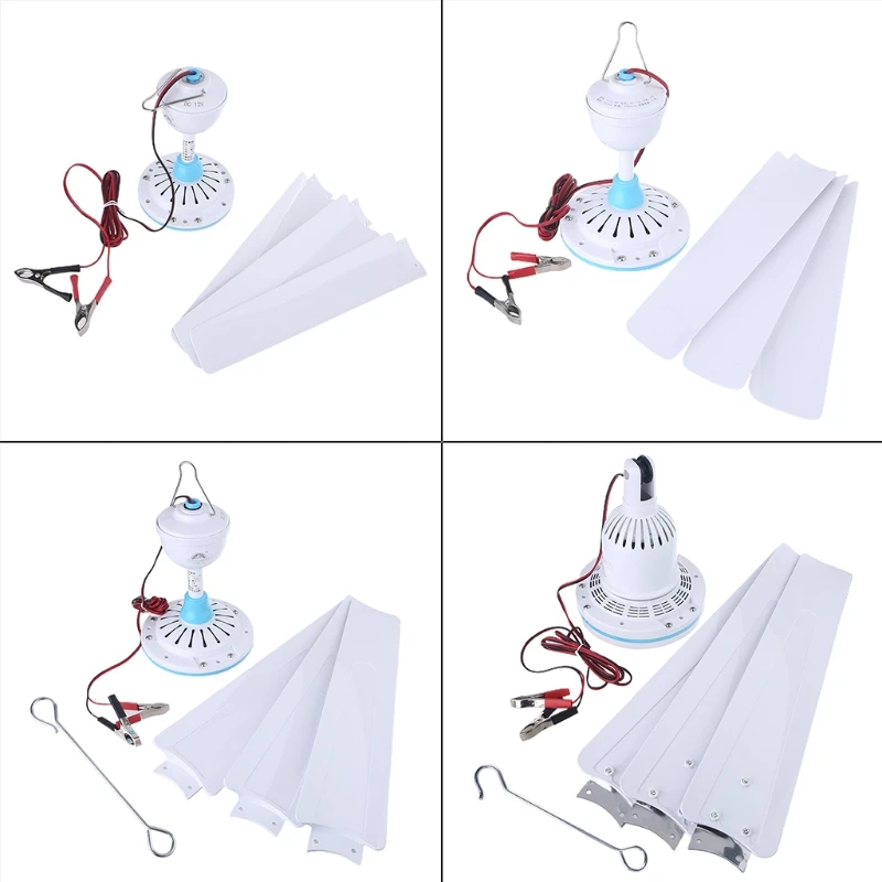Тихий потолочный вентилятор 27,5 дюйма, 35,4 дюйма, 41,3 дюйма, 47,2 дюйма, 12 В, подвесной вентилятор с кабелем 2,35 м для палатки для кемпинга на открытом воздухе, дома, без переключателя