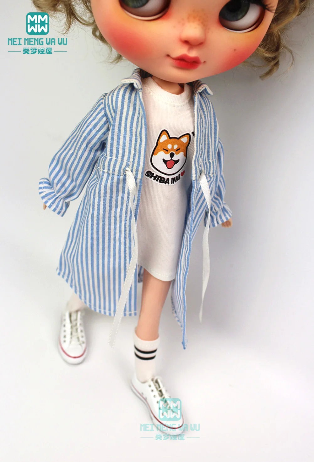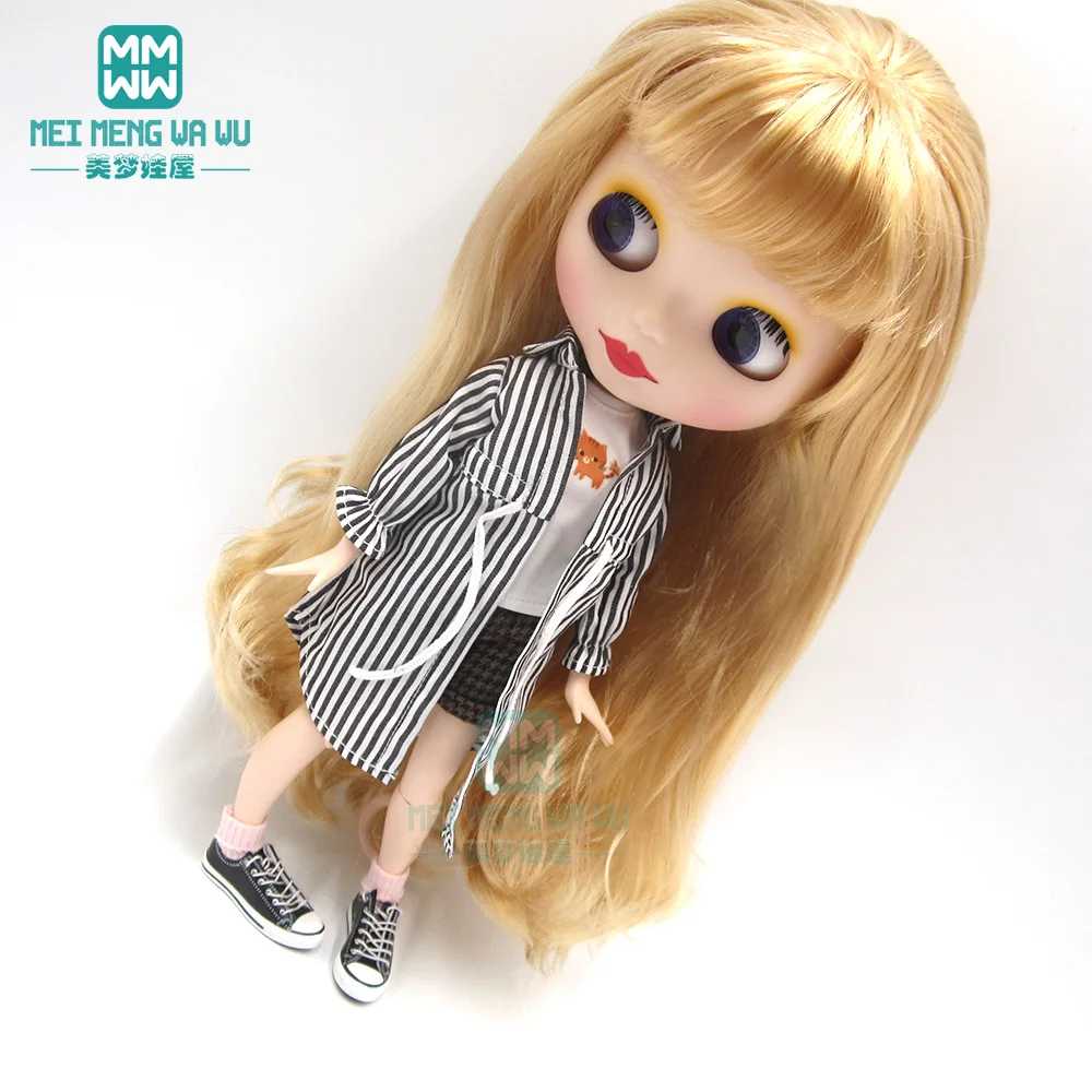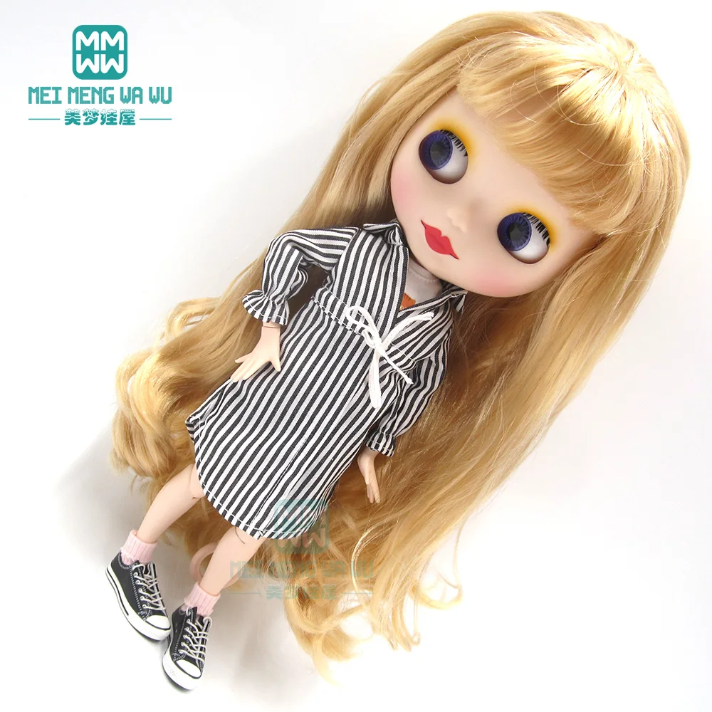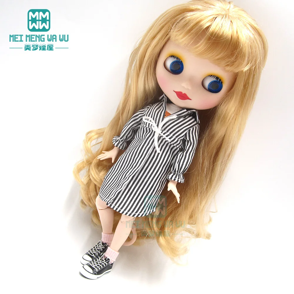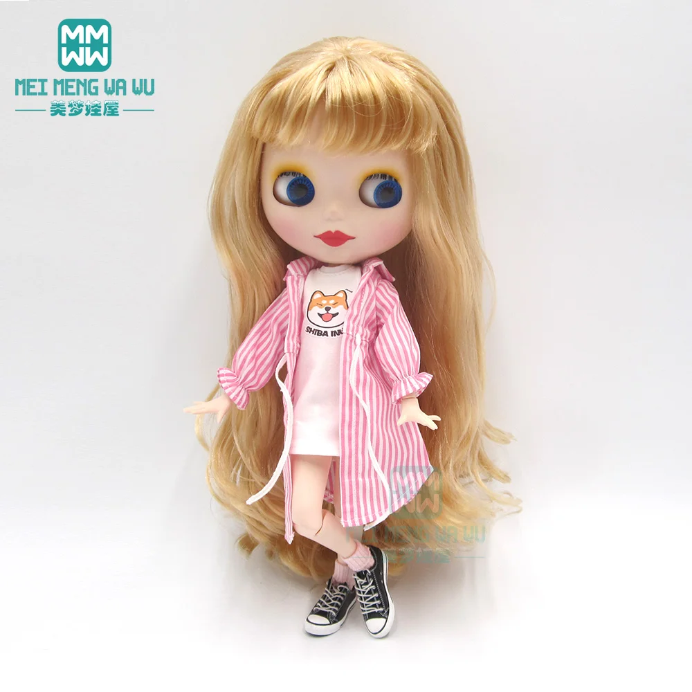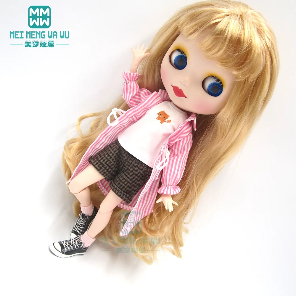 Одежда для кукол Blyth, 1 шт., Повседневная рубашка в полоску, синий, розовый, черный, аксессуары для кукол Blyth Azone16