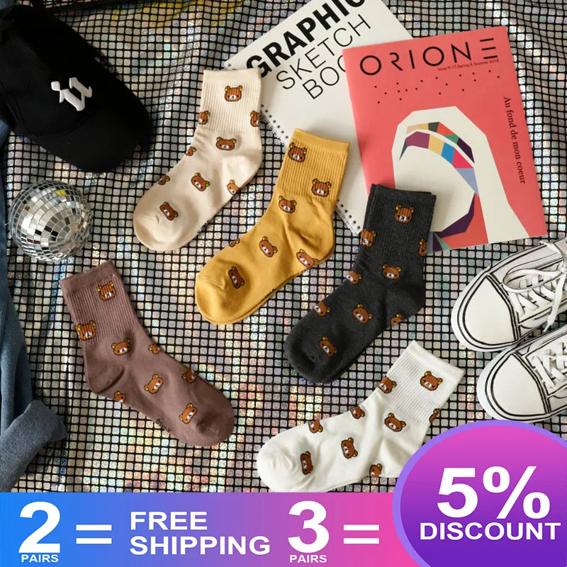 Новинка 2019, милые Мультяшные женские хлопковые забавные женские носки, повседневные носки с милым принтом животных в виде медведя, уличные носки с принтом в виде мультяшных животных, в виде уличных, в виде милых мультяшных животных, в виде милых мультяшных животных, забавные женские носки, забавн