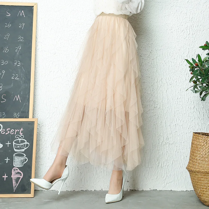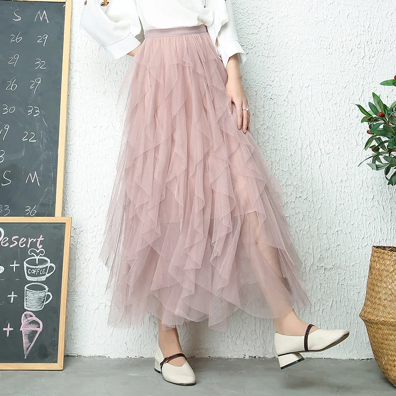 Женская плиссированная юбка макси, черная юбка-пачка из тюля, с высокой талией, весна-лето, 2019