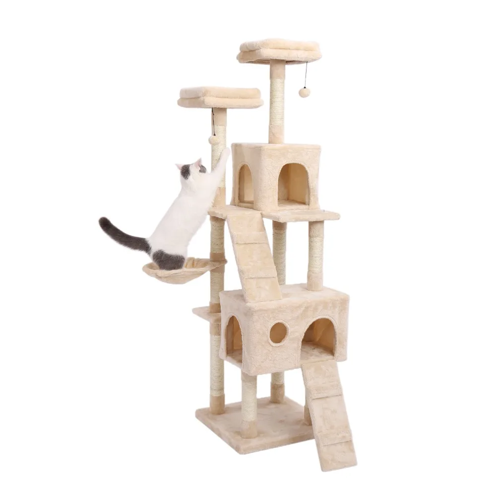 Кошачий домик для кошек, Когтеточка на дереве мебель для кондоминиума, игрушка для прыжков, гамак с мячом для котят