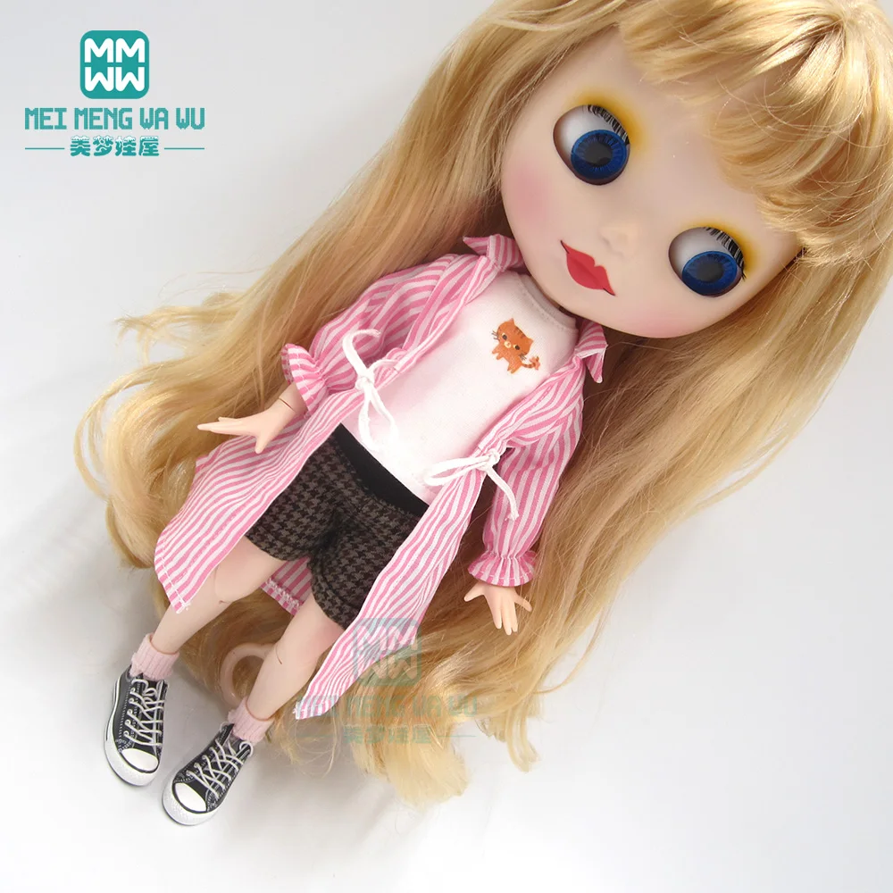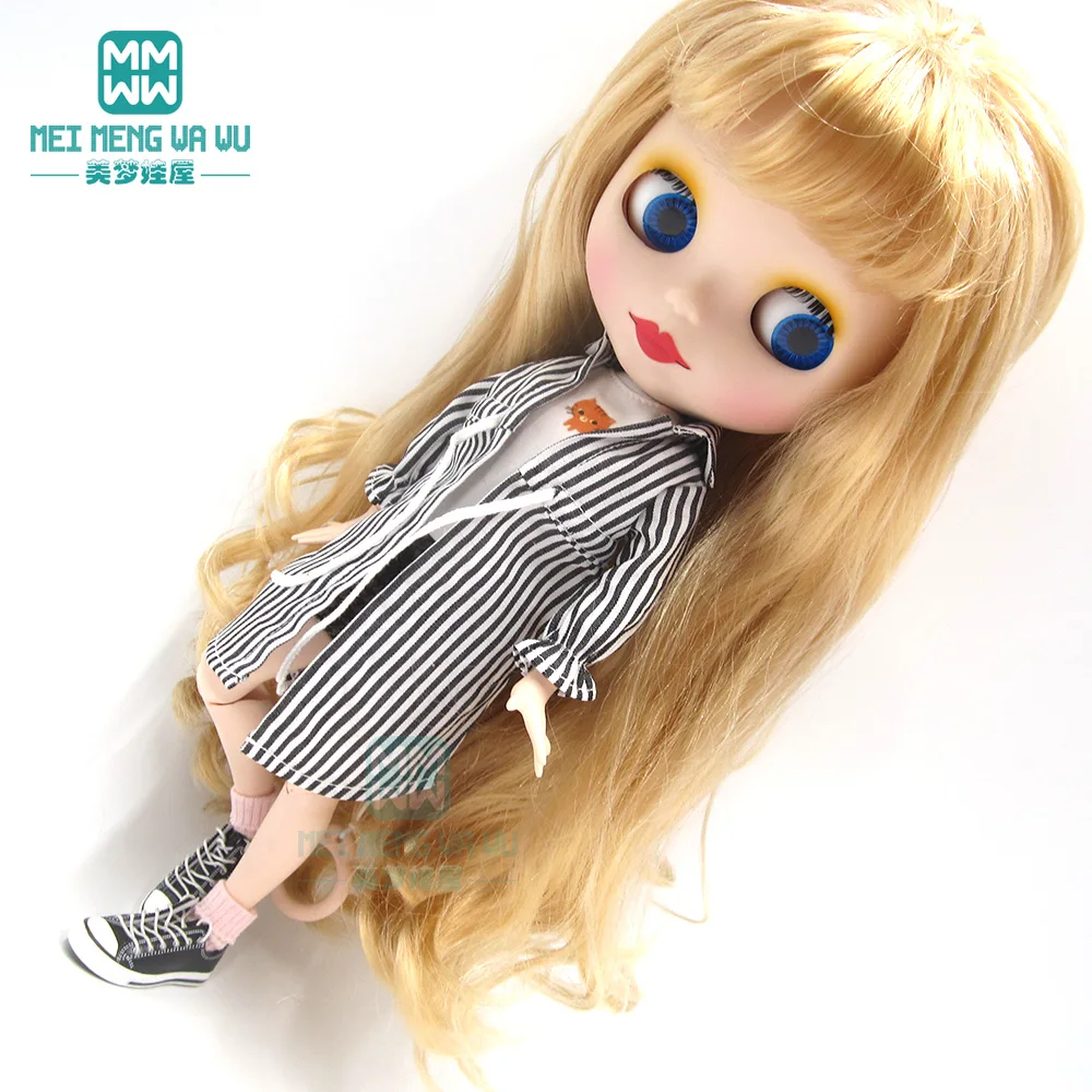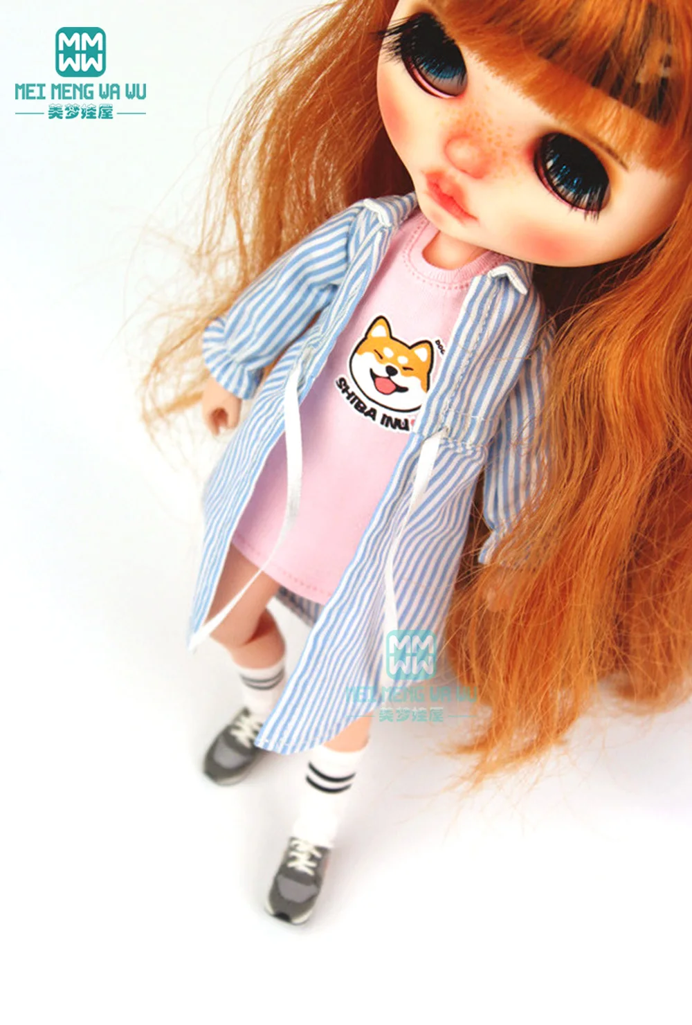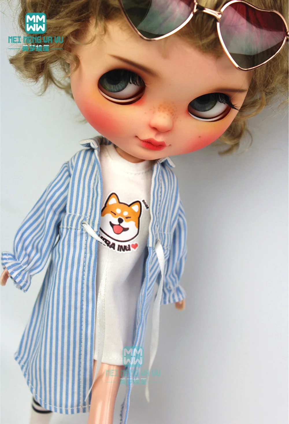 1 шт., Одежда для кукол Blyth, рубашка в синюю полоску, футболка с принтом для кукол Blyth Azone16