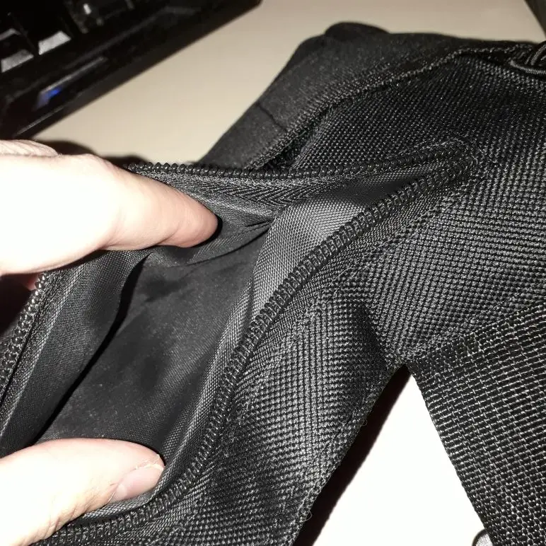 Кайфовая сумка. Спереди большой карман, плюс два недокармана по краям на липучках (хз зачембутылку можно повесить наверно). В теории можно сделать карман на внутренней стороне, как на маленькой версии, если сделать прорезь и вставить молнию