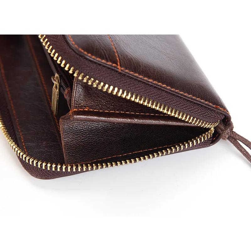 Мужской деловой Длинный кошелек, повседневный клатч из натуральной кожи, мужской кошелек на молнии, длинный держатель для карт, кошелек