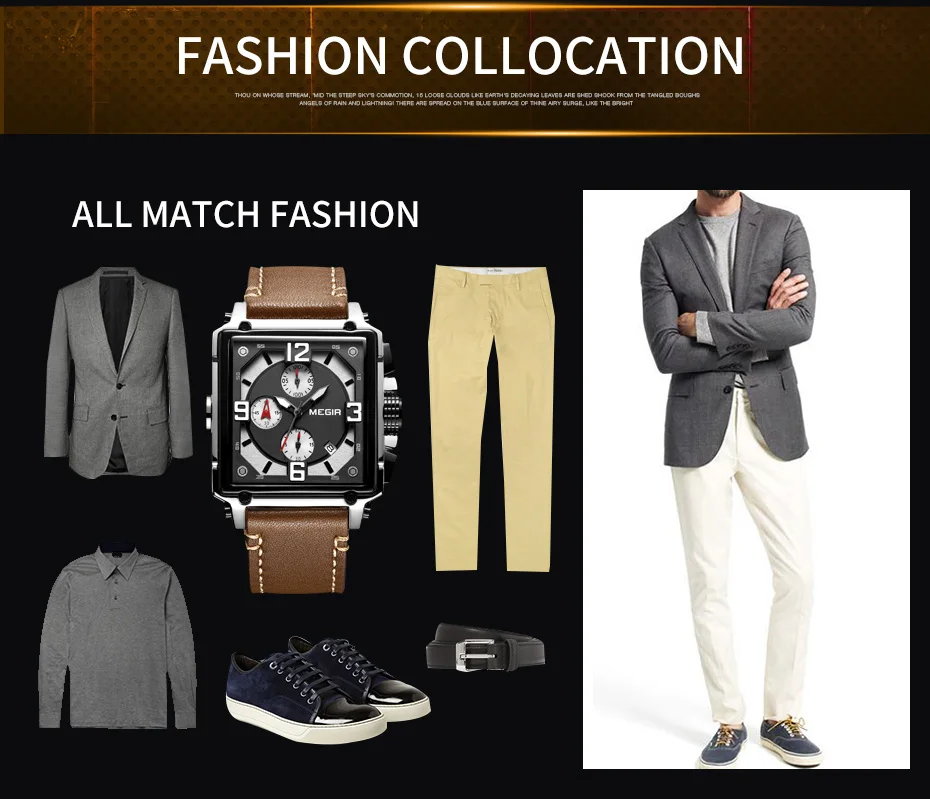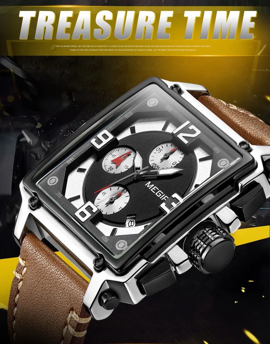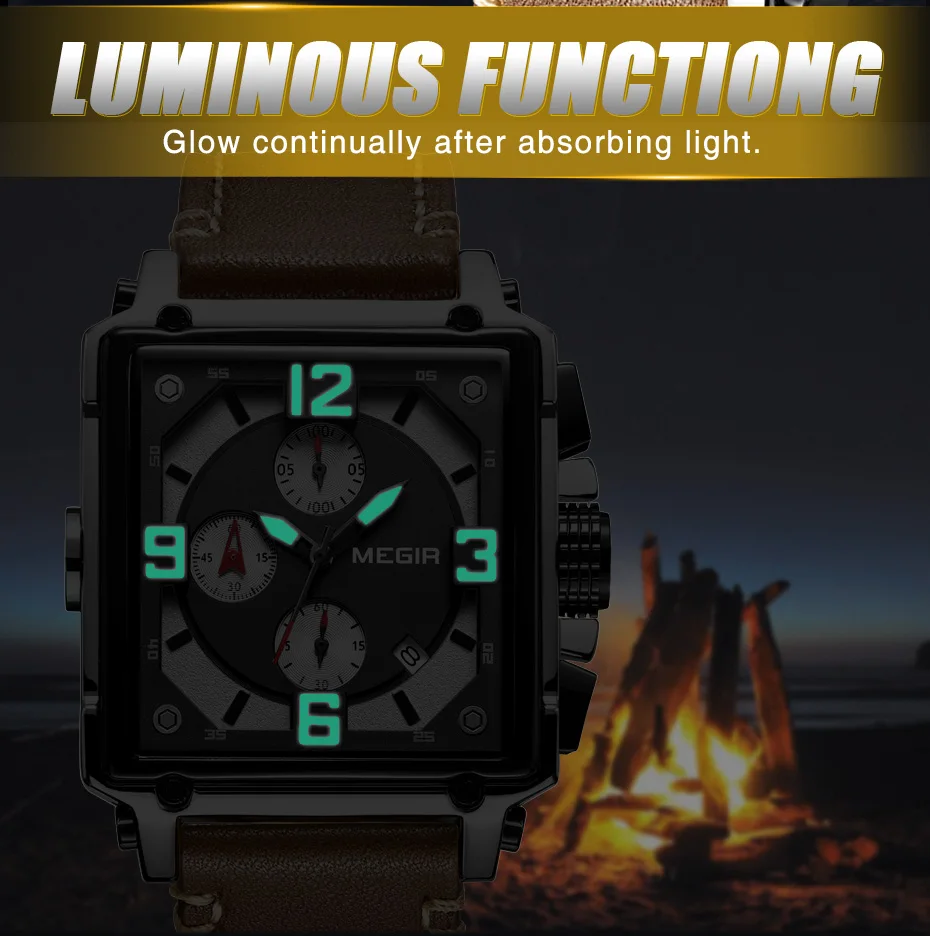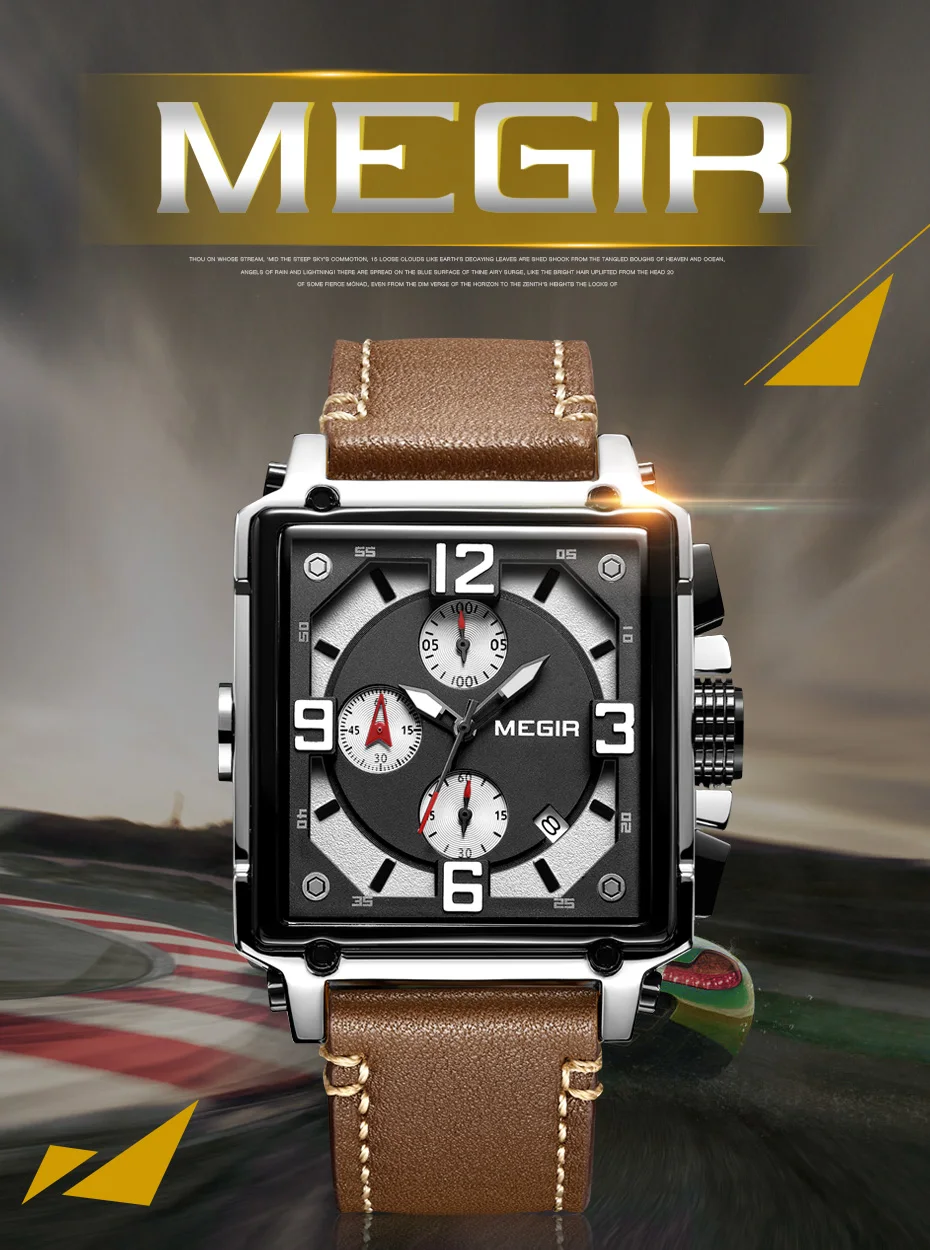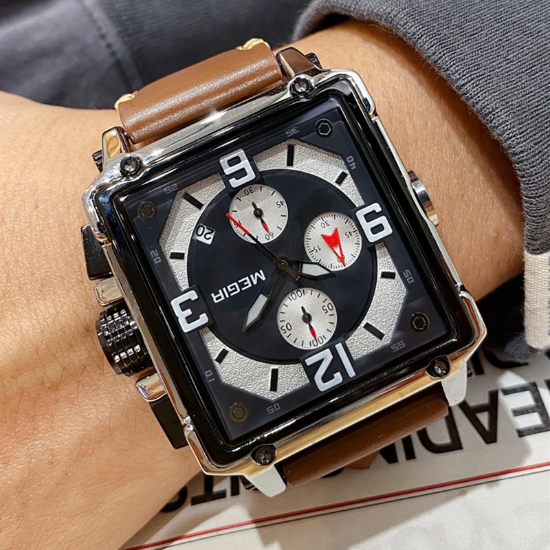 MEGIR Для мужчин большой циферблат Роскошные Лидирующий бренд Кварц...