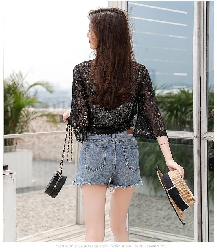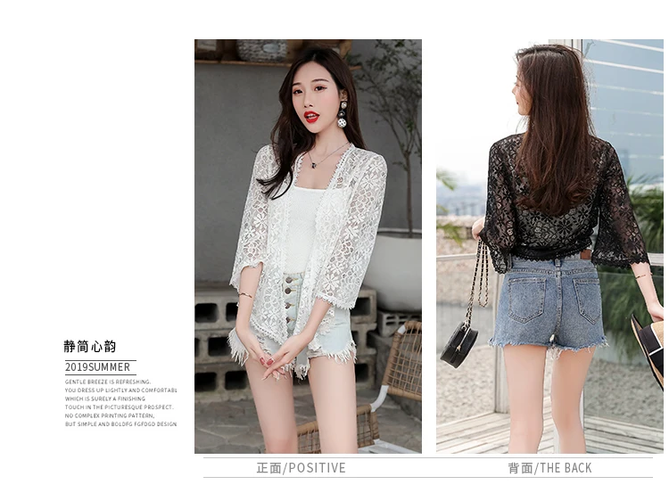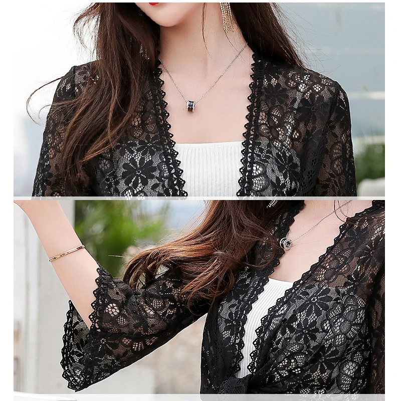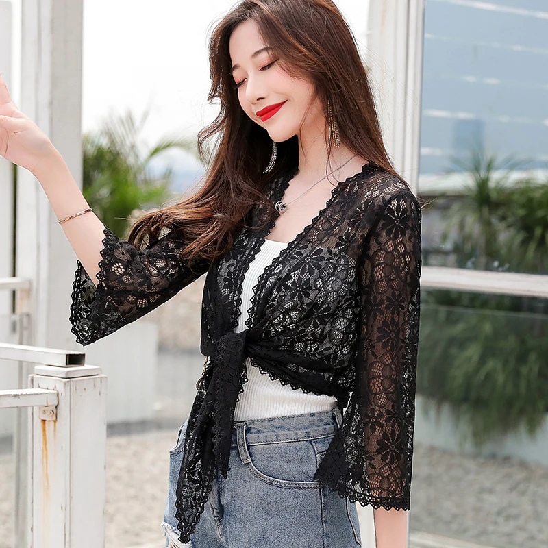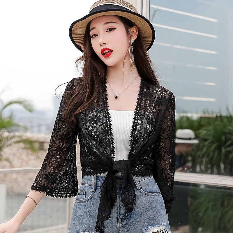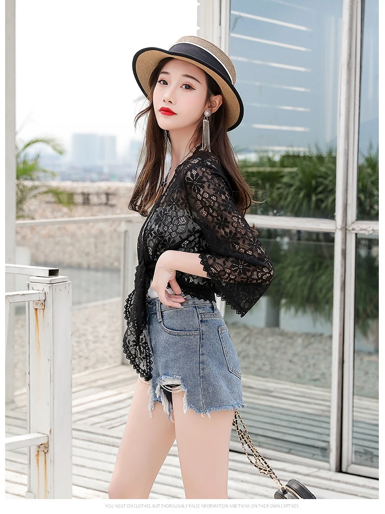 Кардиган женский пляжный с кружевом, пикантная Свободная блузка, повседневный ажурный топ, пляжная одежда, белый и черный цвета, лето 2021
