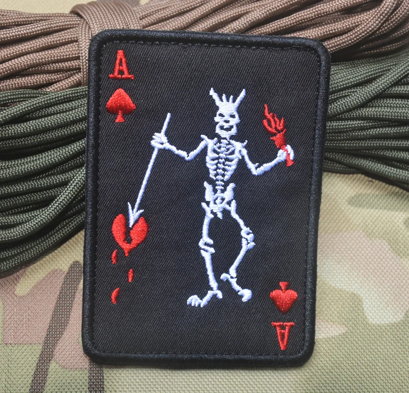 Кавалерист туз пик вышитые патч смерти карты прямоугольный тактичес...