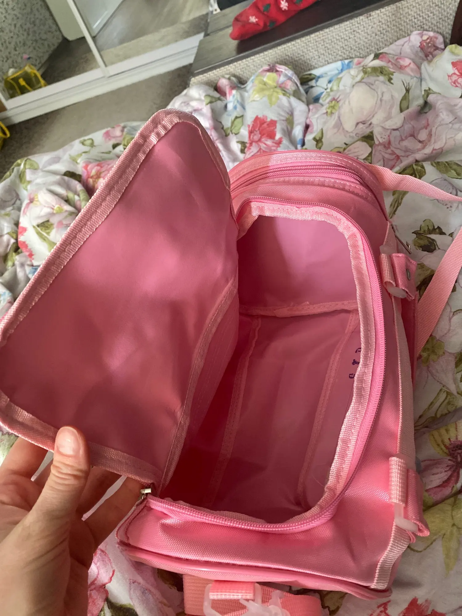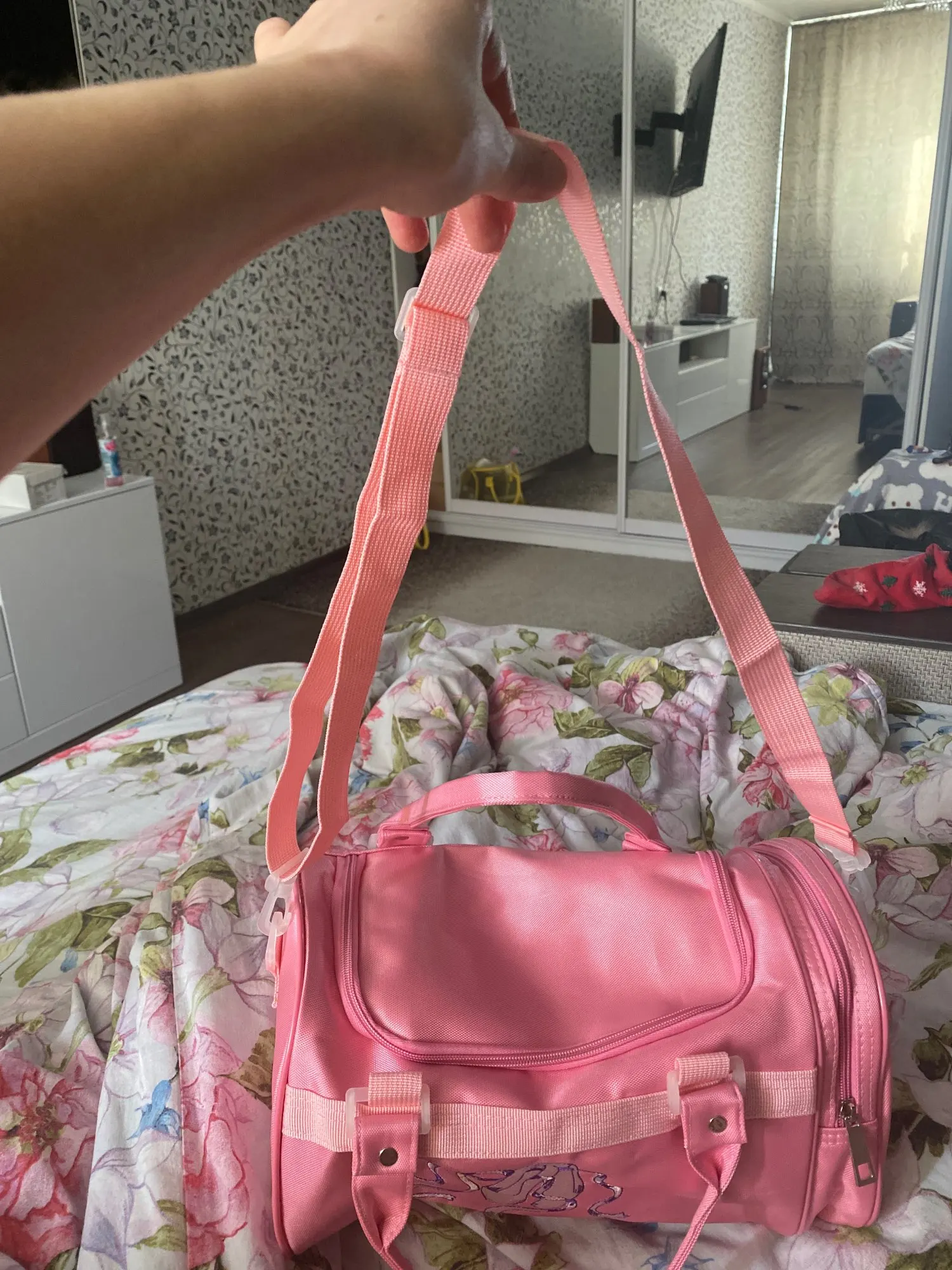 Дочка начала ходить на танцы,вот и заказала эту сумочку для формы и не пожалела!Думала если честно,что будет тонкая тряпочка,совсем не плотная,а оказалась вполне хорошая и красивая девчачья сумка!Она не легкая,плотный материал,2 боковых отделения,ремешок через плечо в комплекте,для ручной переноски две ручки,что очень удобно. Все строчки ровные,замки работают,выполнена прекрасно,дно без жесткой подкладки.Чистая,без пятен,потертостей и затяжек!Мы очень довольны,спасибо большое за сумку!!!!