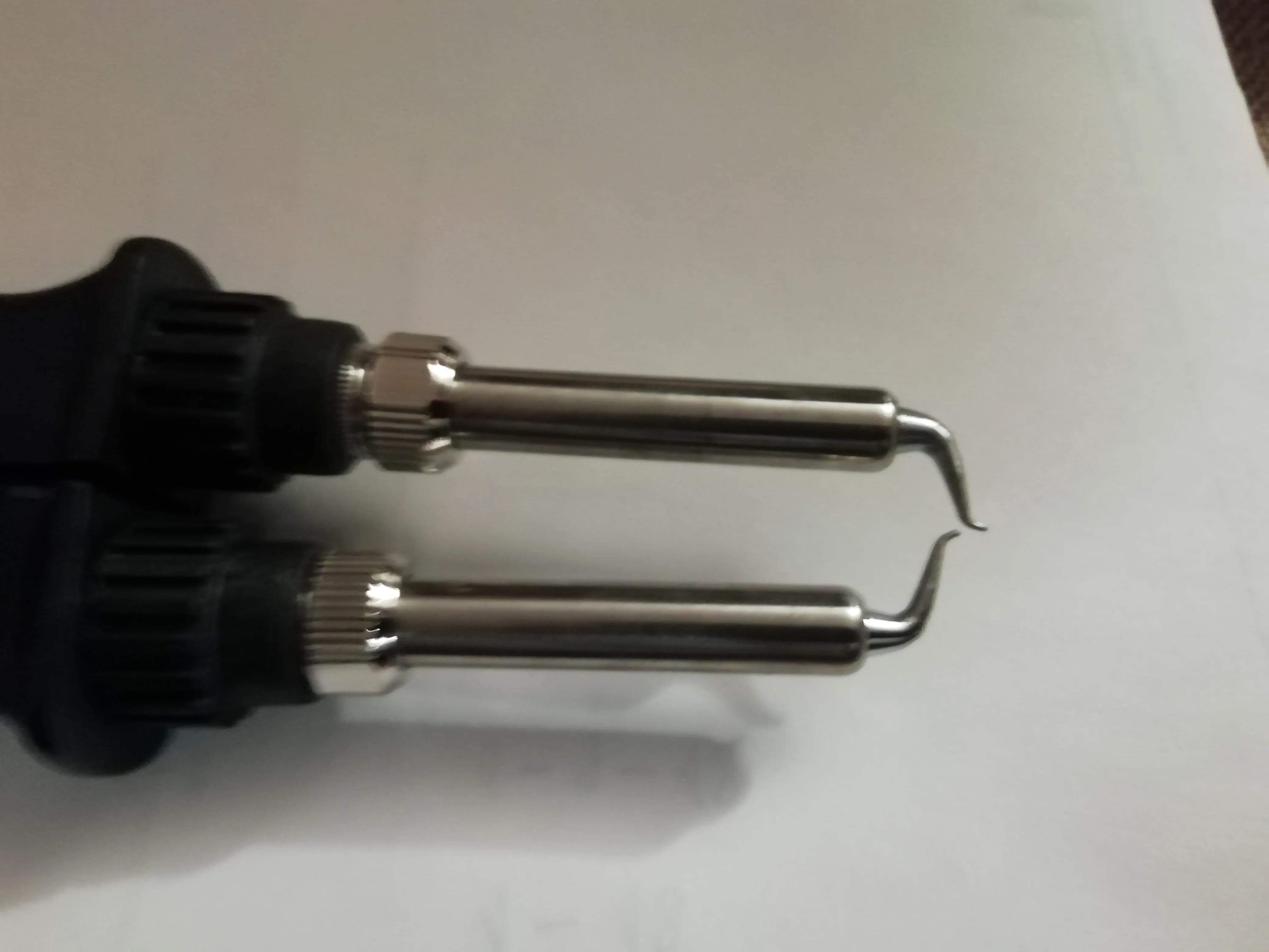 The solder irons are not in oposite therefore not usable. The Heating Plier was packaged only in plastic bag without any protection therefore one of the solder heater is totaly broken and non working. Like this it was waste of money. I opening the dispute.