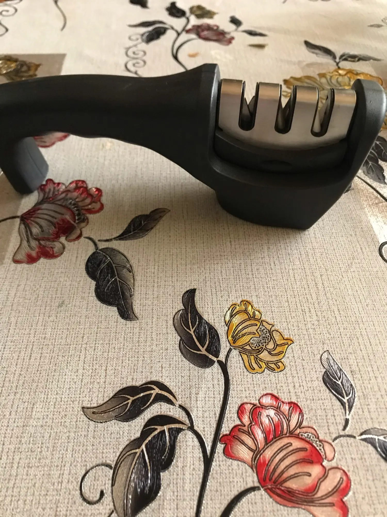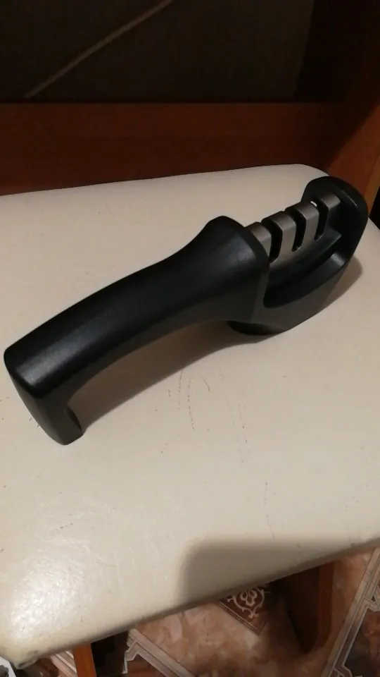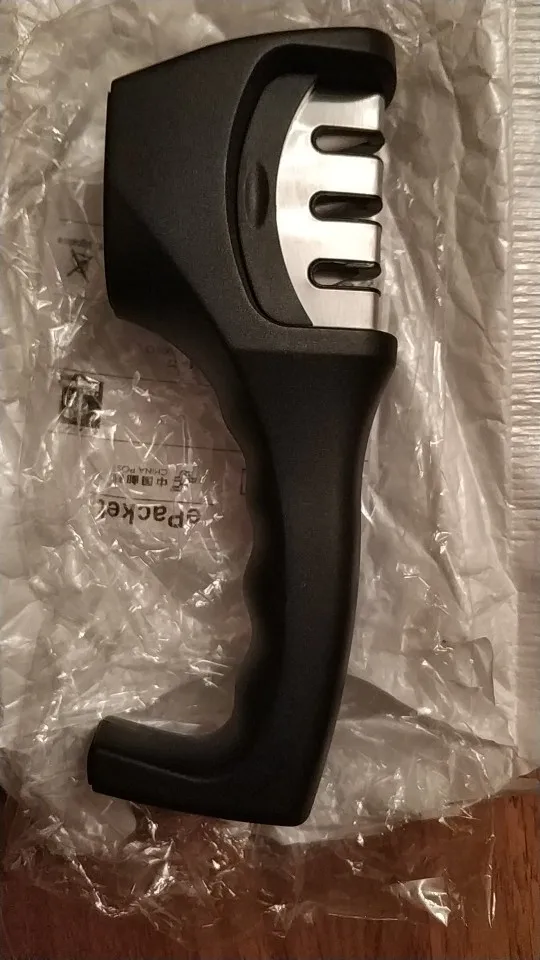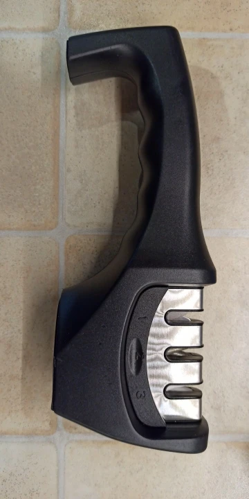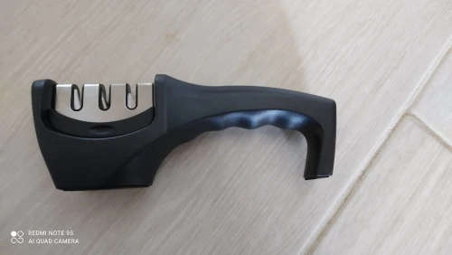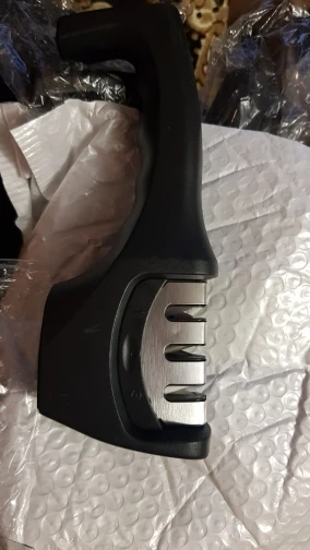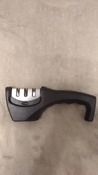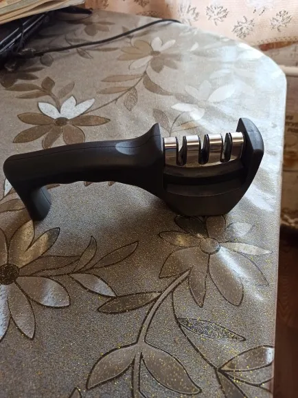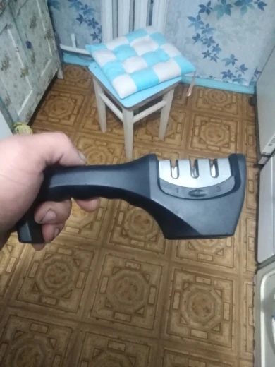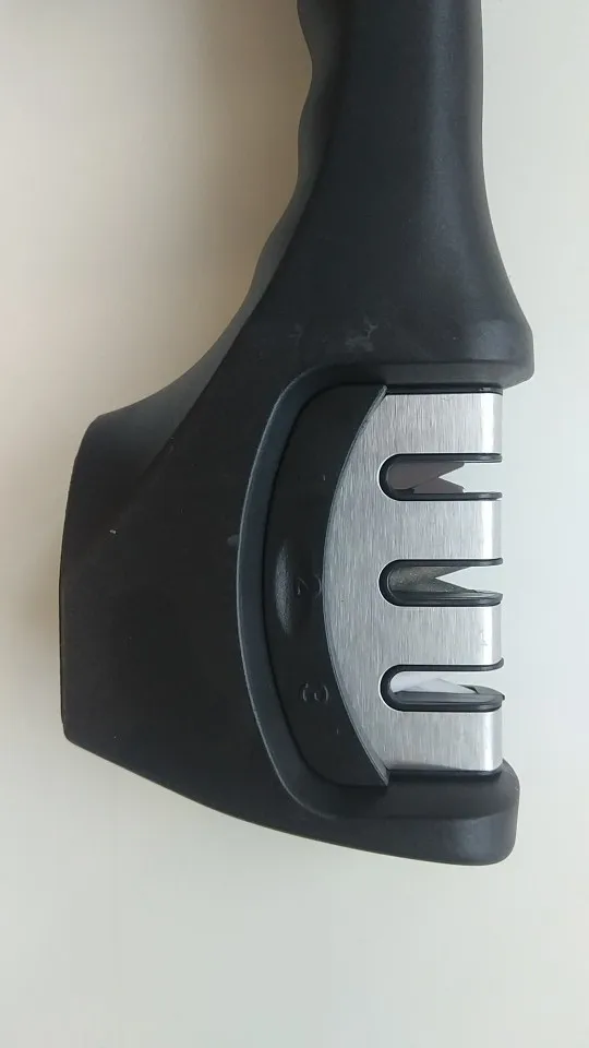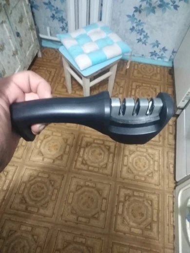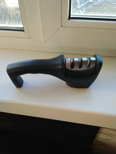 очень как рекоммендую к покупке!!!отлично точит...все 3 отсека разного уровня...даже на первой отлично точит...до 2 и 3 даже не дохожу так как сильно остро опасно.. тем более дети...в руке очень удобно держать..сам по себе легкий и есть возможность повесить куда-'нить...до этого страдала с ножеточкой старая была...с этой за 15 сек можно наточить нож!!!