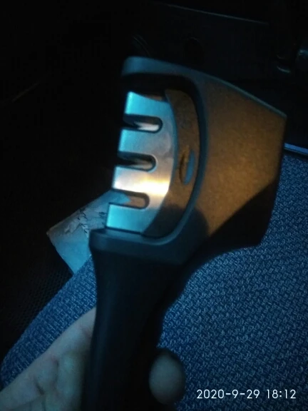 Точилка только с пятой попытки улетела из Китая, забирать с почты было сцикотно, фиг знает почему она так долго выходную таможню не могла пройти, но все обошлось. Упаковка вообще никакая просто почтовый пакет, но не смотря на это пришла целая. Смотрится достаточно массивно, в руке лежит удобно, но неожиданно легкая, видать пластик не самый толстый. Точит хорошо, раз два три и нож конечно не как бритва, но что то около того.