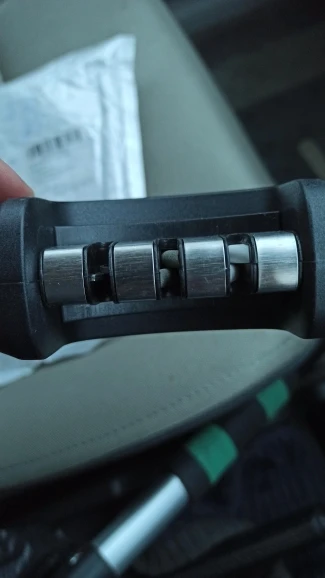 Точилка пластик - ручка хорошая касета с точильными элементами низкого качества на фото вставил другую покупал у другого продавца, стоила по цене как здесь всё вскоре в целом за эту цену можно покупать ножи точит уже опробовал!