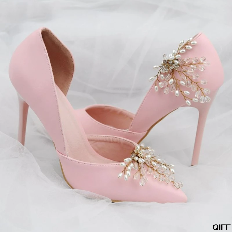Свадебные туфли с застежкой; Женские туфли на высоком каблуке с пряжкой; Модные роскошные украшения; Имитация жемчуга