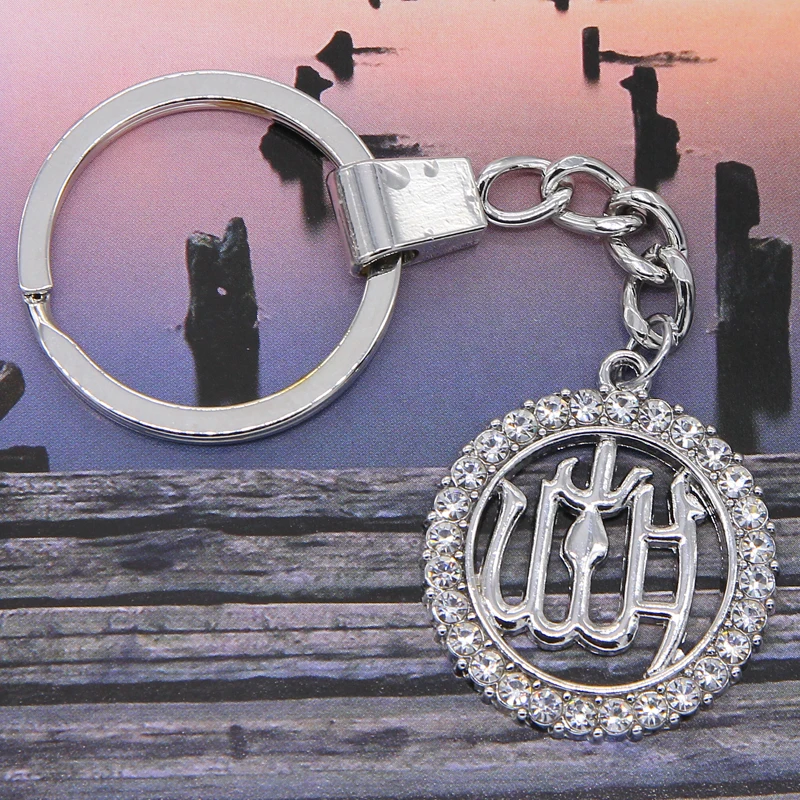 Классический Арабский Мусульманский Исламский Бог, инкрустация Фианитами, Круглый Сплав, цепочка для ключей, религиозные подарки, оптовая продажа