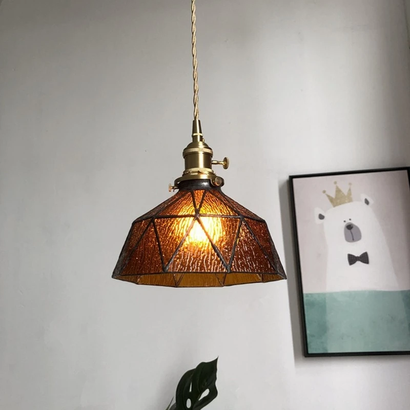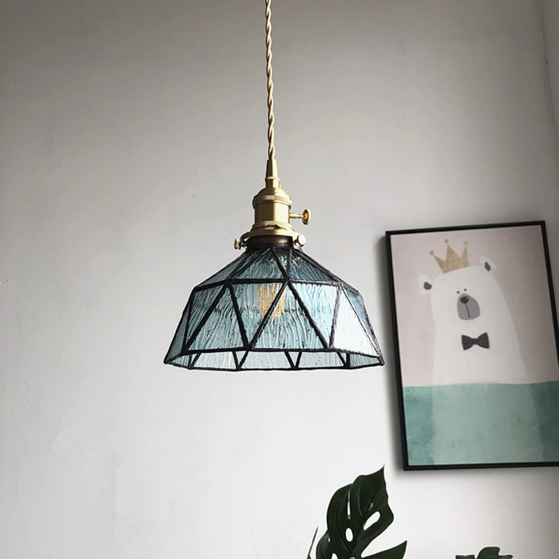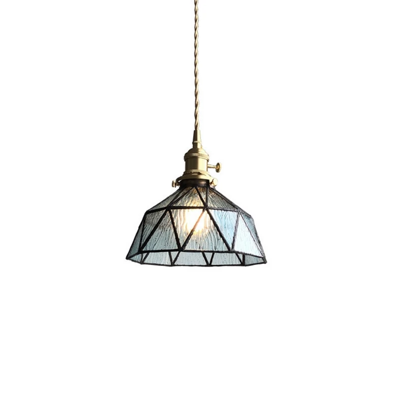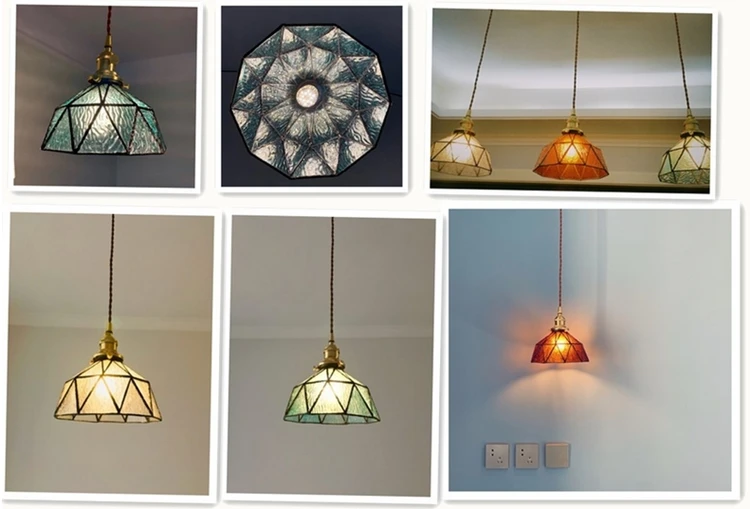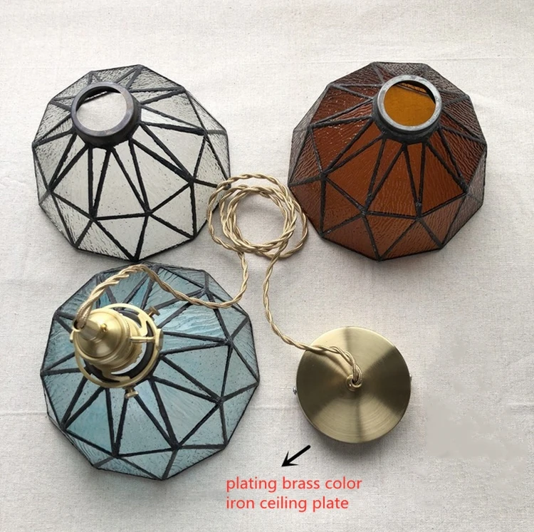 Антикварная люстра из витражного стекла освещение современный прозрачный синий коричневый стеклянный латунный держатель Подвесная лампа