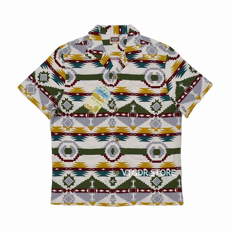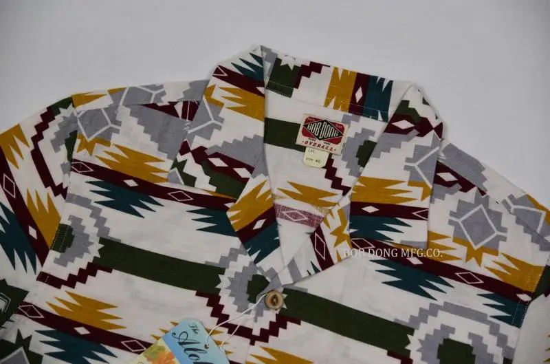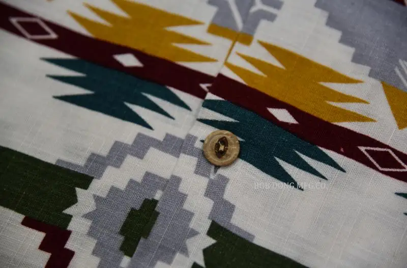 BOB DONG Индийский тотем петля воротник рубашки летние мужские Slubby CF с короткими рукавами