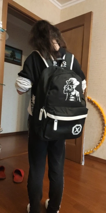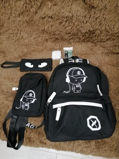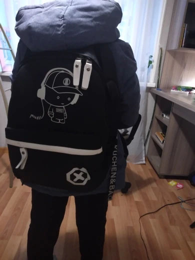очень вместительный рюкзак (заказывала самый большой что был у продавца), порт для usb и aux работает исправно, наушники, пинал, кодовый замок пришли в комплекте, рисунок светить в темноте. Качество рюкзака хорошее, думаю прослужит долго. Заказом очень довольна!