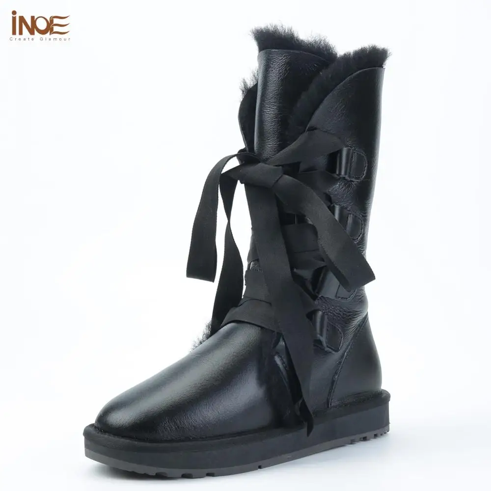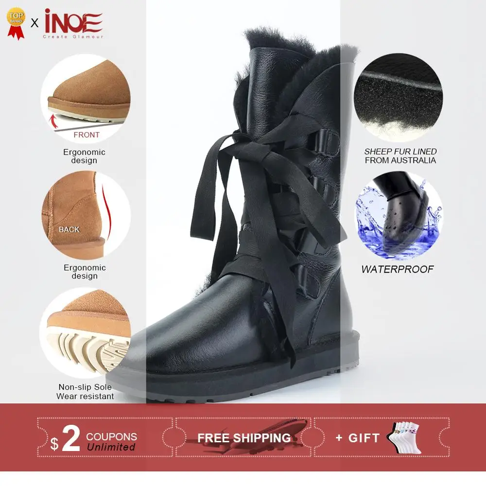 INOE модные женские высокие зимние зимние сапоги теплая непромокаемая обувь на подкладке из натурального овечьего меха натуральная замшевая кожа на шнуровке на шнуровке