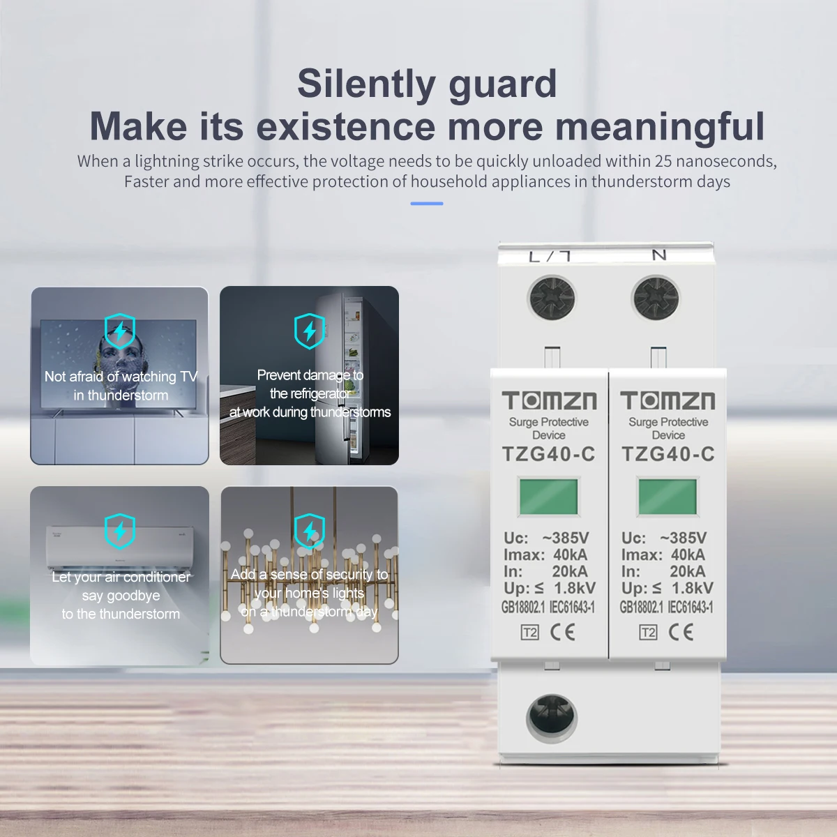AC SPD 2P 20KA 40KA 275V дом Защита от перенапряжения защитное Низковольтное устройство
